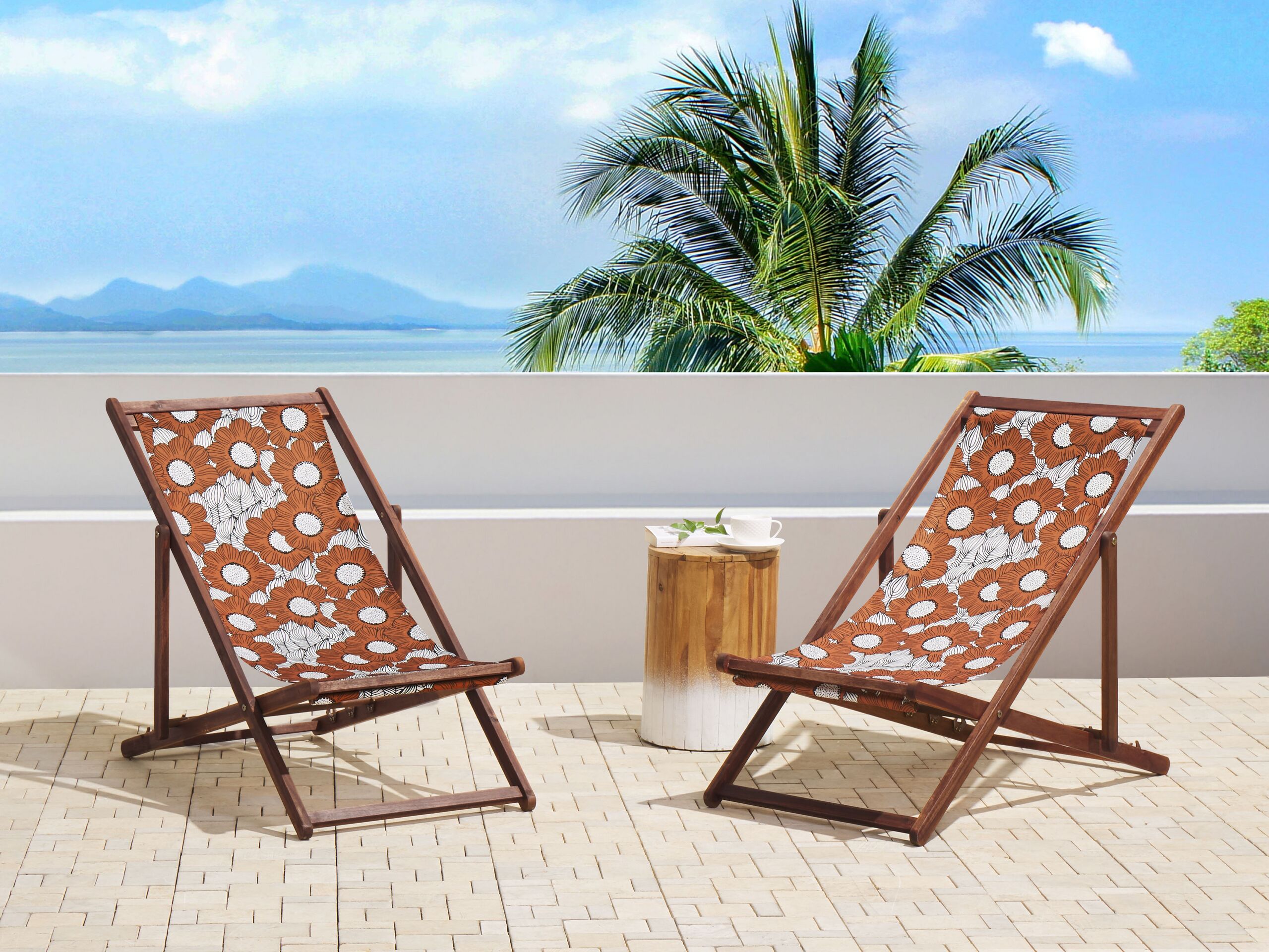Beliani - ANZIO - Strandstoel set van 2 - Donkerhout|Rood - Polyester