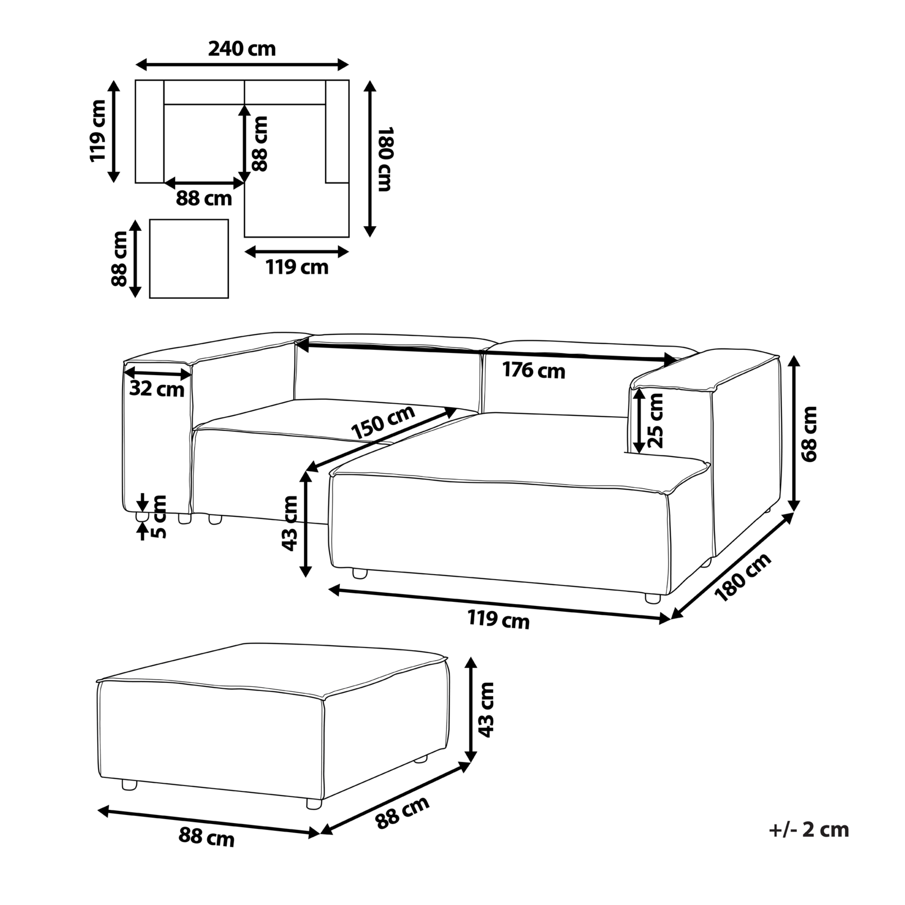 Beliani-APRICA-Tweezitsbank met ottomaan-Beige-Linkerzijde-Linnen