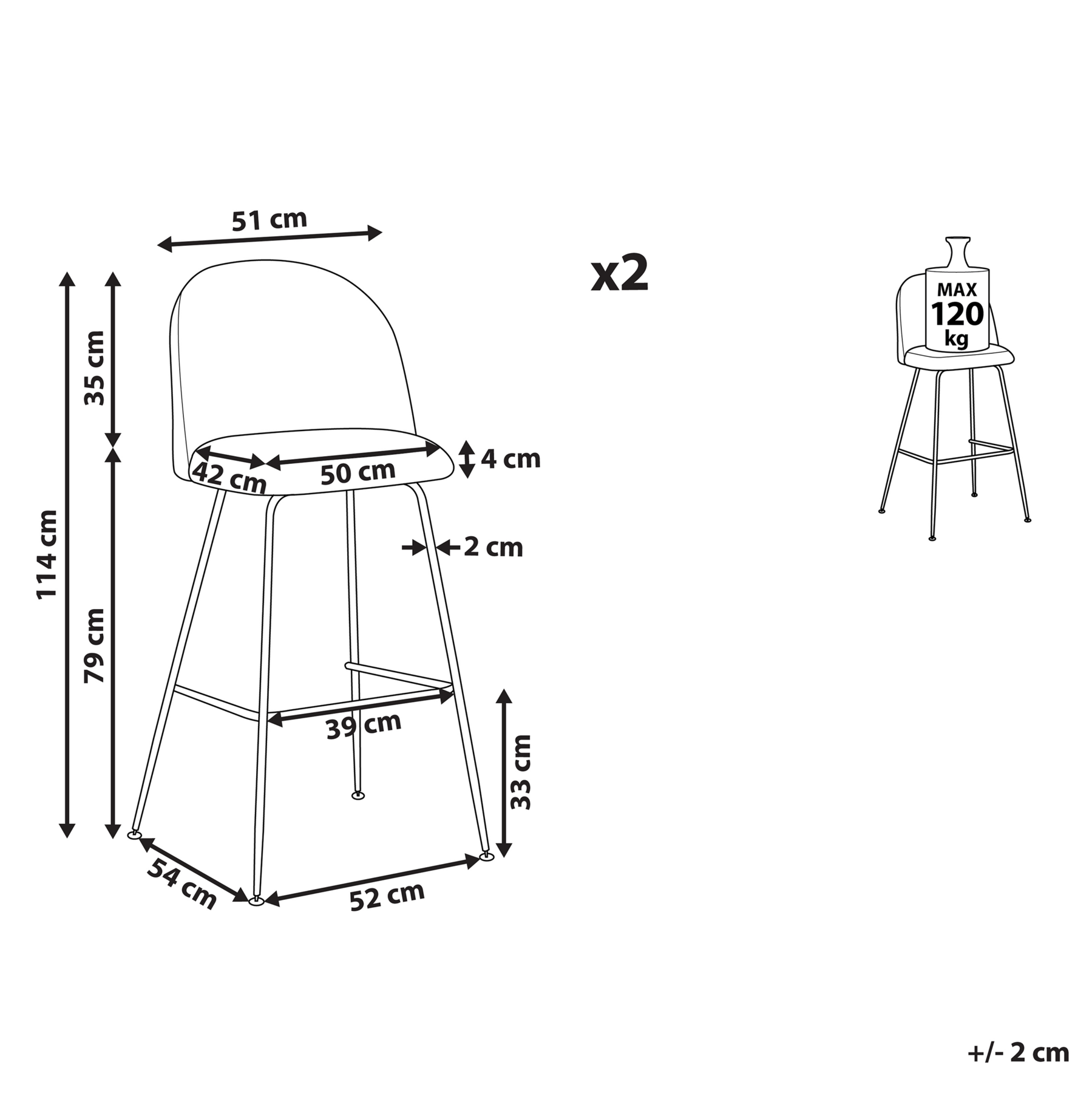 Beliani - ARCOLA - Barkruk set van 2 - Gebroken wit - Fluweel
