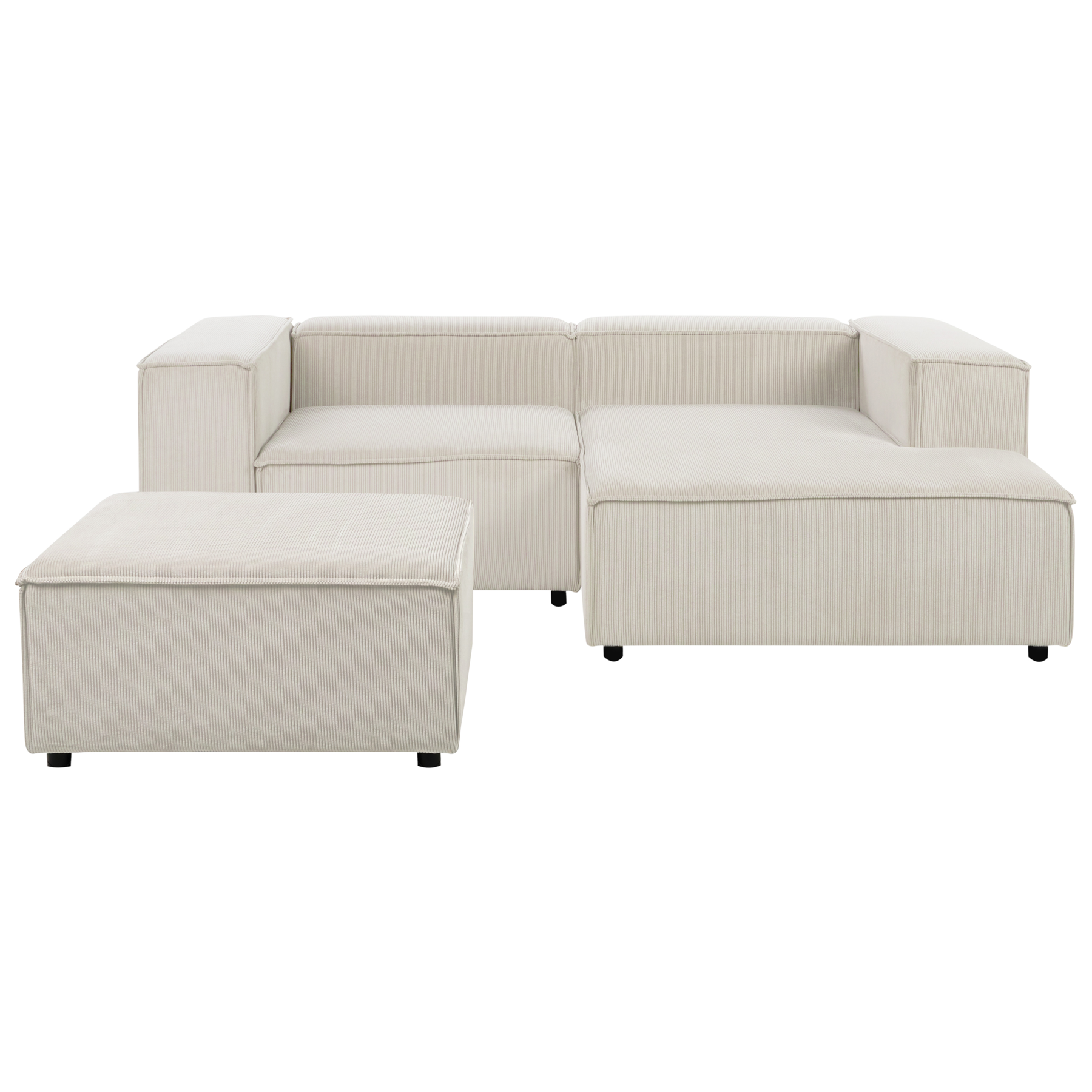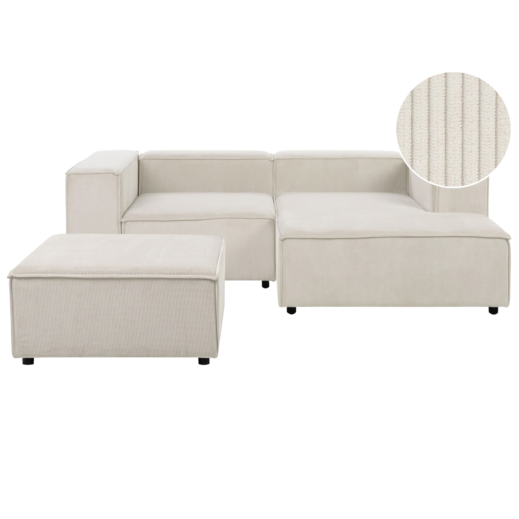 Beliani-ARDAL-Hoekbank met ottomaan-Off-white-Linkszijdig-Corduroy