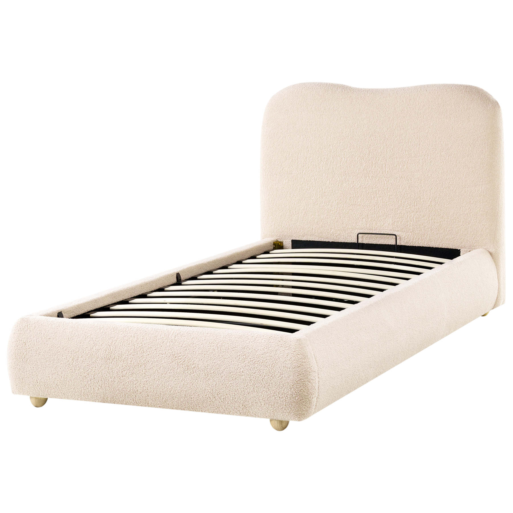 Beliani-BLAGNAC-Bed met opbergruimte-Lichtbeige-90 x 200 cm-Bouclé