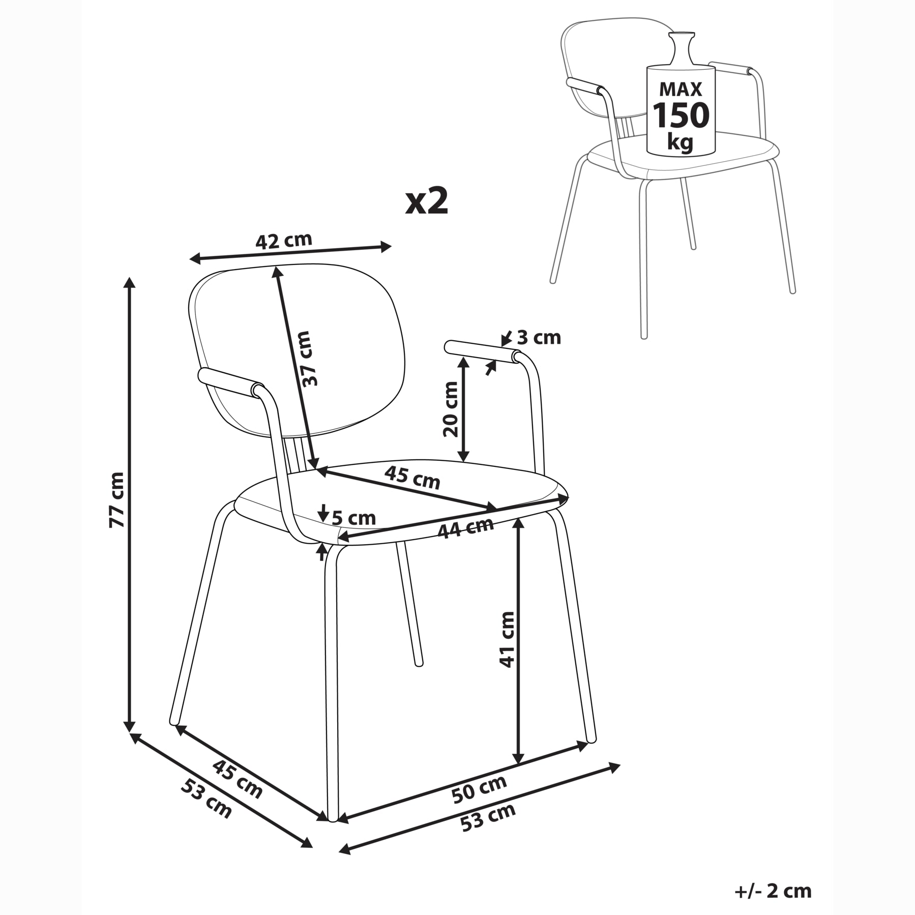 | Maximale draagkracht | 150 kg |