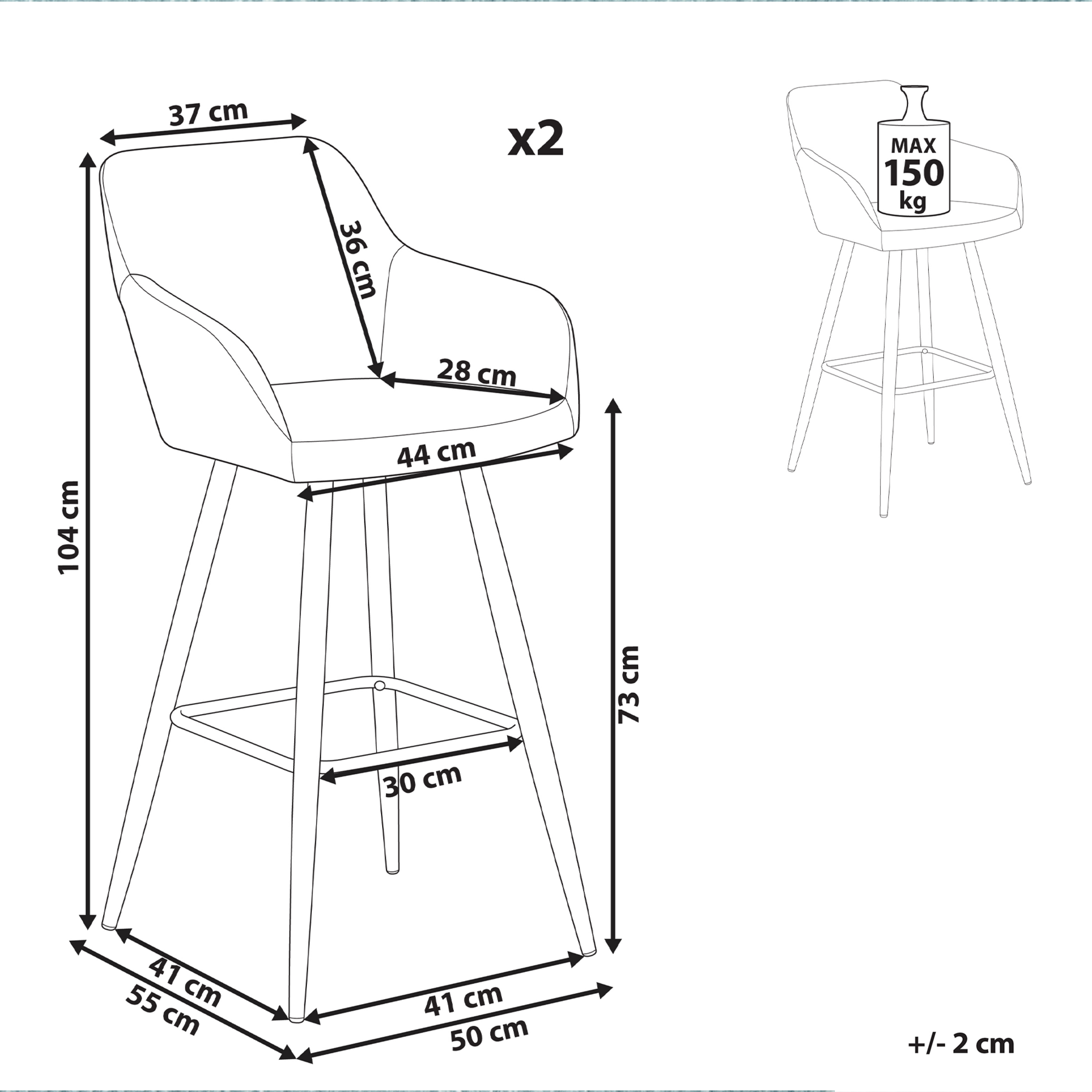 Beliani - CASMALIA - Barkruk set van 2 - Lichtblauw - Fluweel