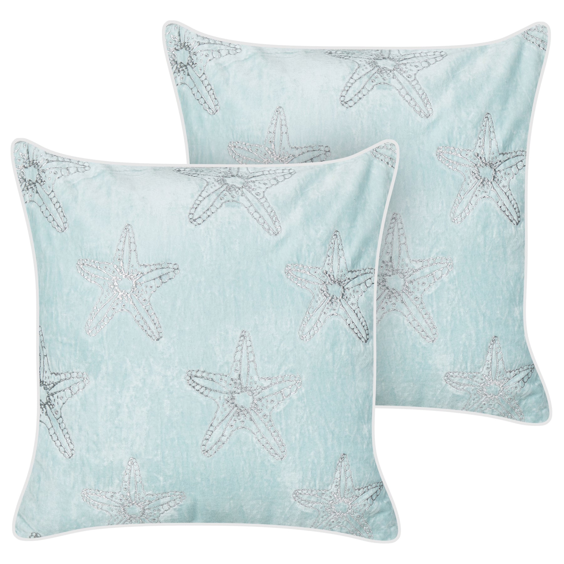 Beliani-CERAMIUM-Sierkussen set van 2-Blauw-45 x 45 cm-Fluweel