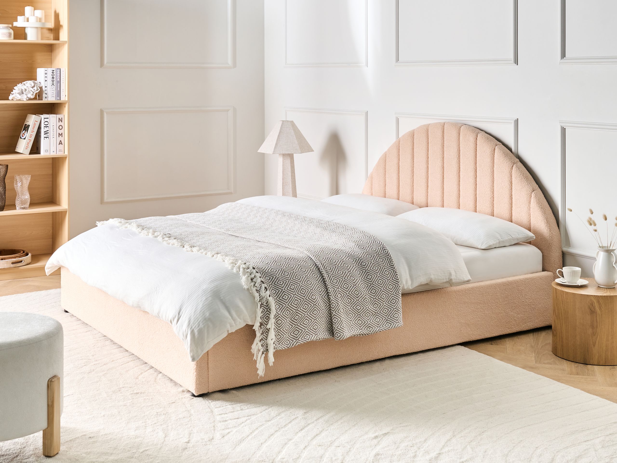 Beliani-CHADENET-Bed met opbergruimte-Perzikroze-160 x 200 cm-Bouclé