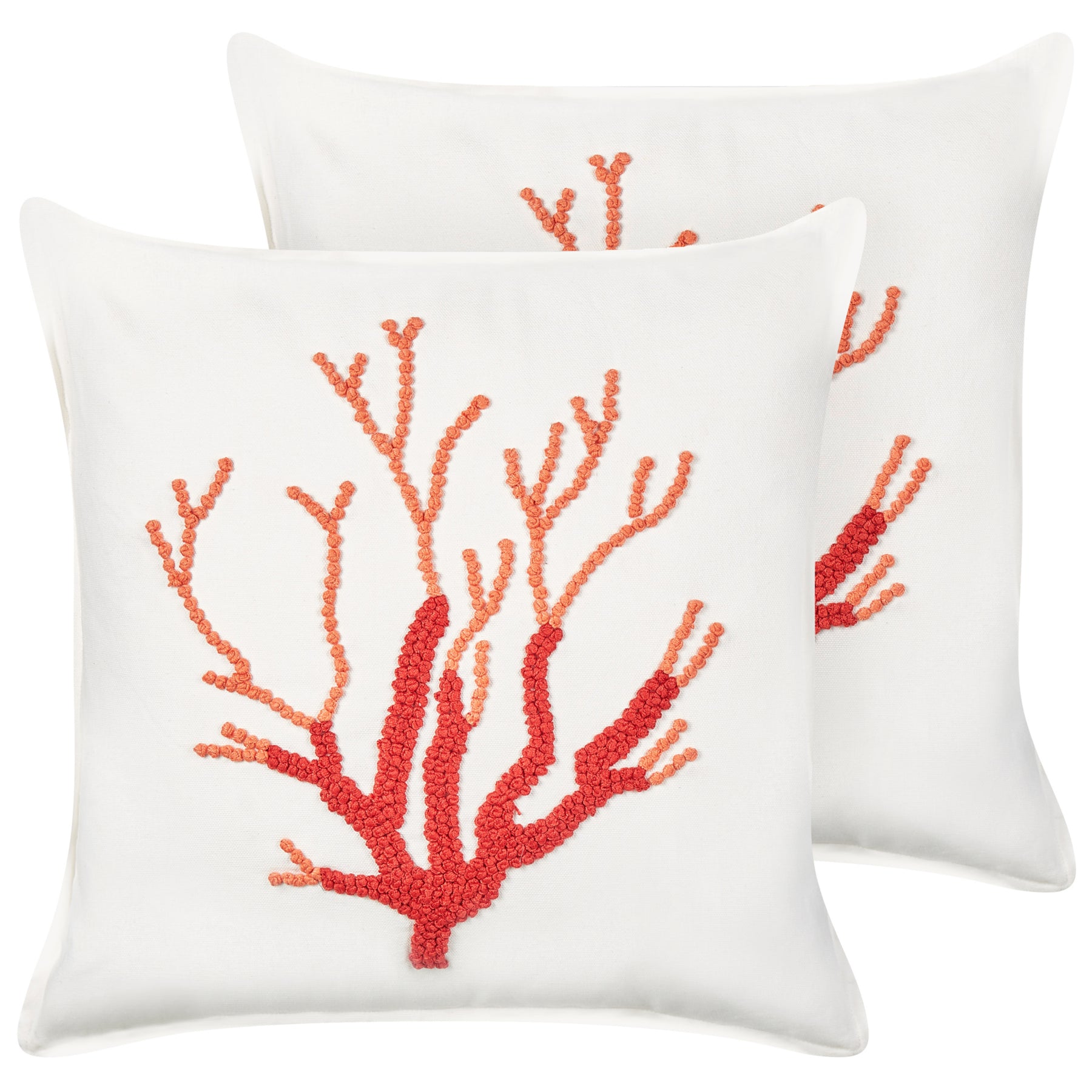 Beliani - CORALIUM - Sierkussen set van 2 - Wit- 45 x 45 cm - Katoen