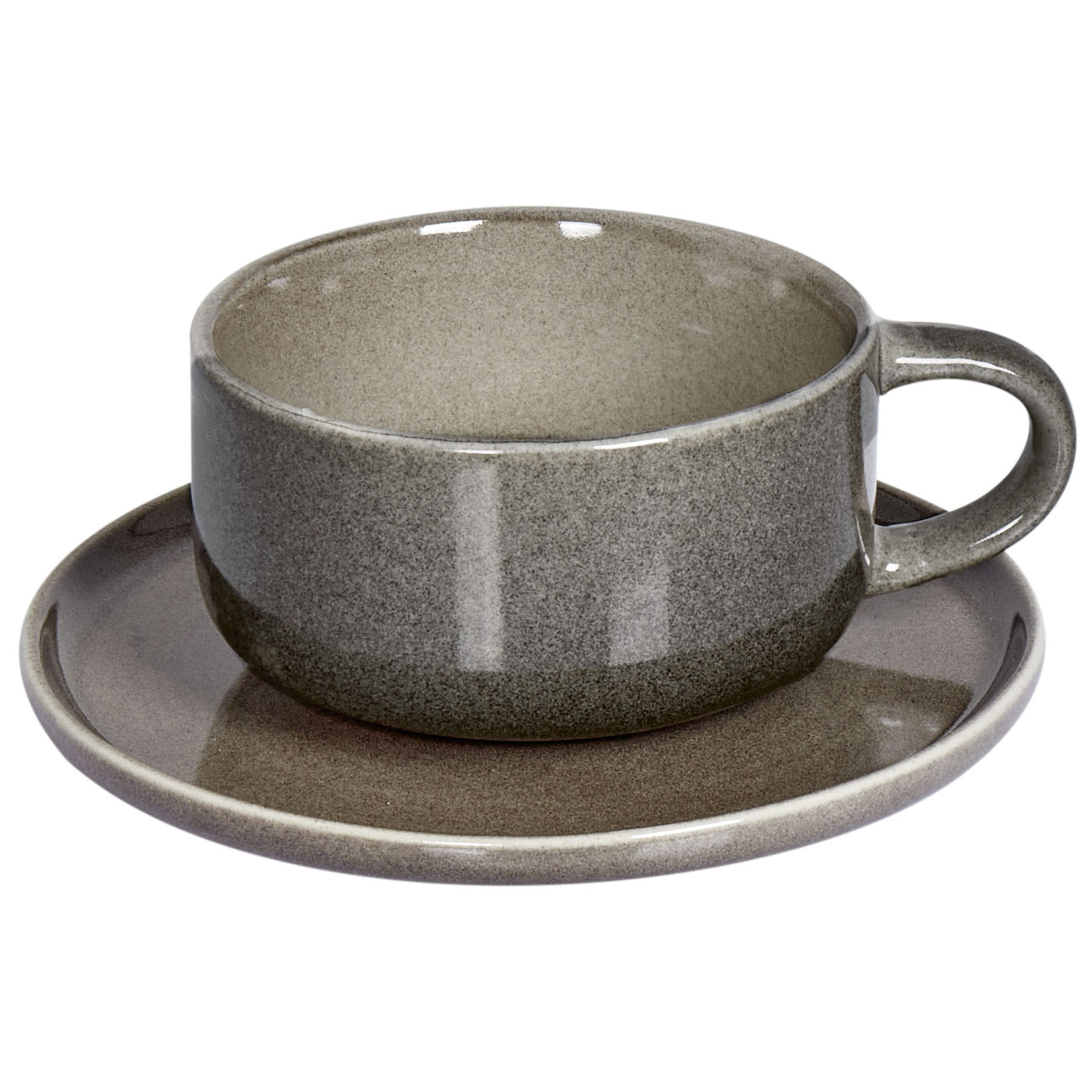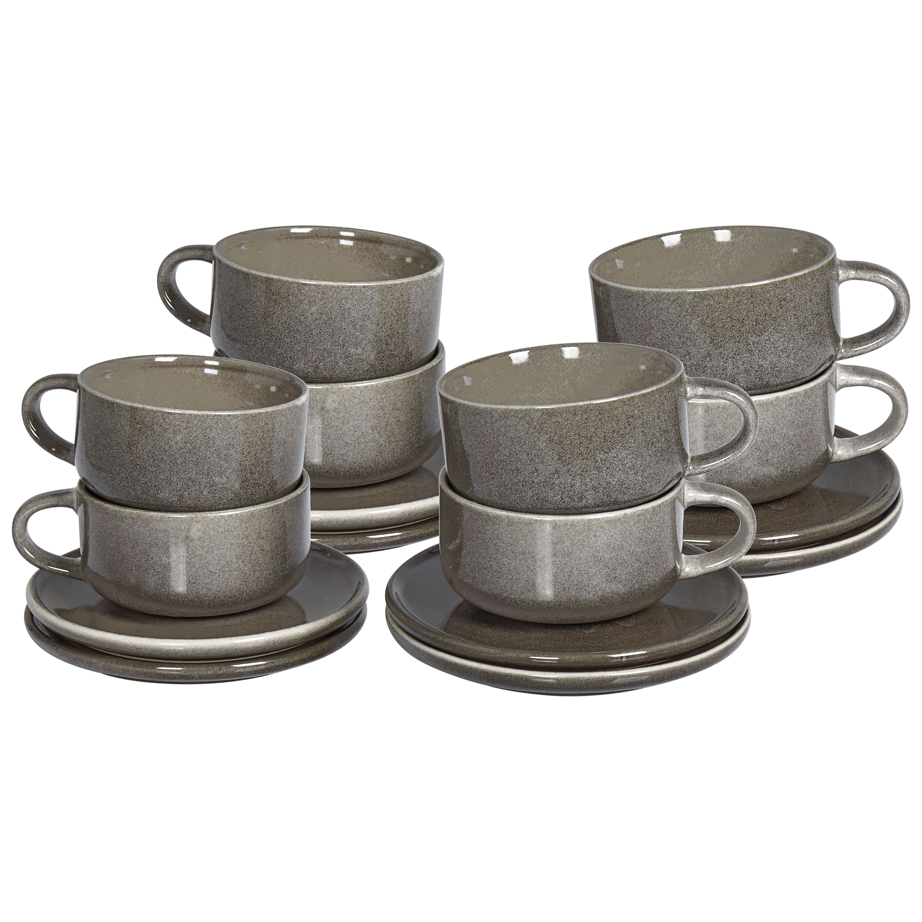 Beliani - COSTMARY - Kop en schotel set van 8 - Grijs - Steengoed