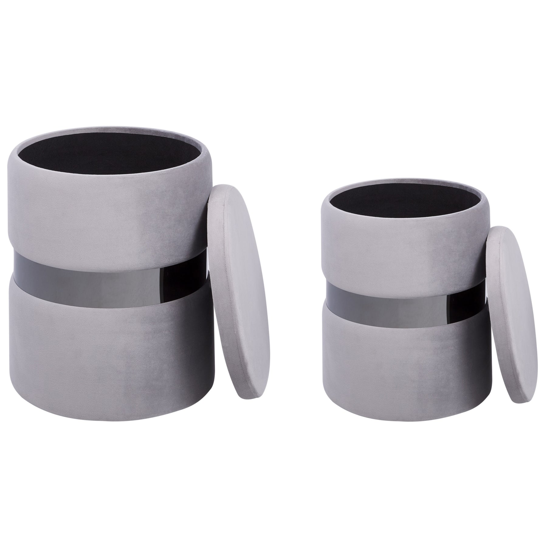 Beliani - DORIS - Poef set van 2 - Lichtgrijs - Fluweel