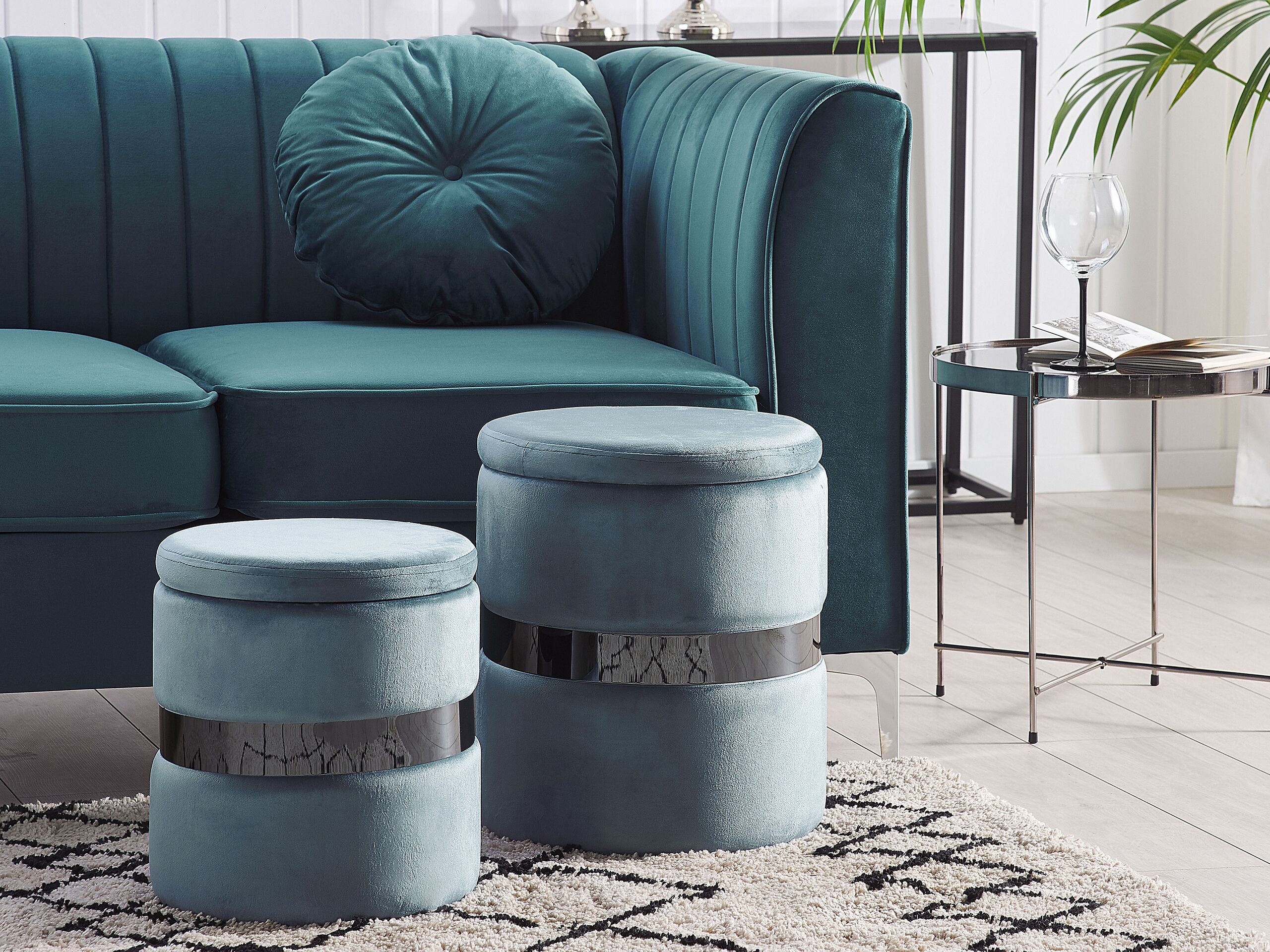 Beliani - DORIS - Poef - Zeeblauw - Fluweel