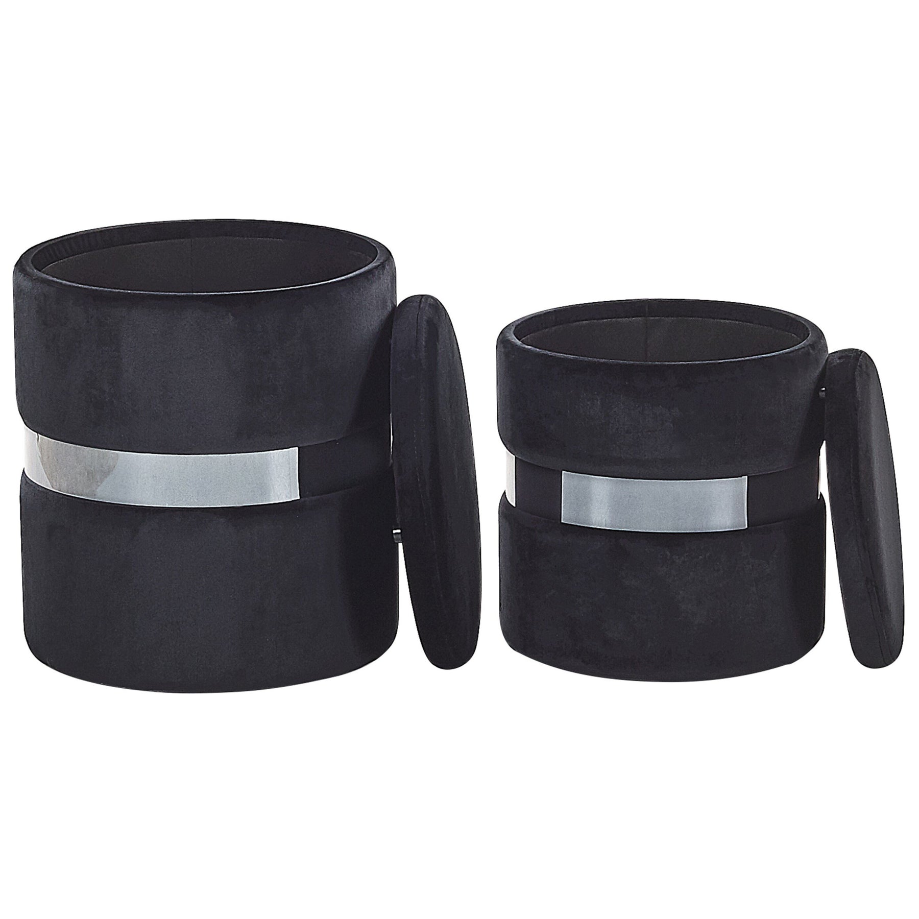Beliani - DORIS - Poef - Zwart - Fluweel
