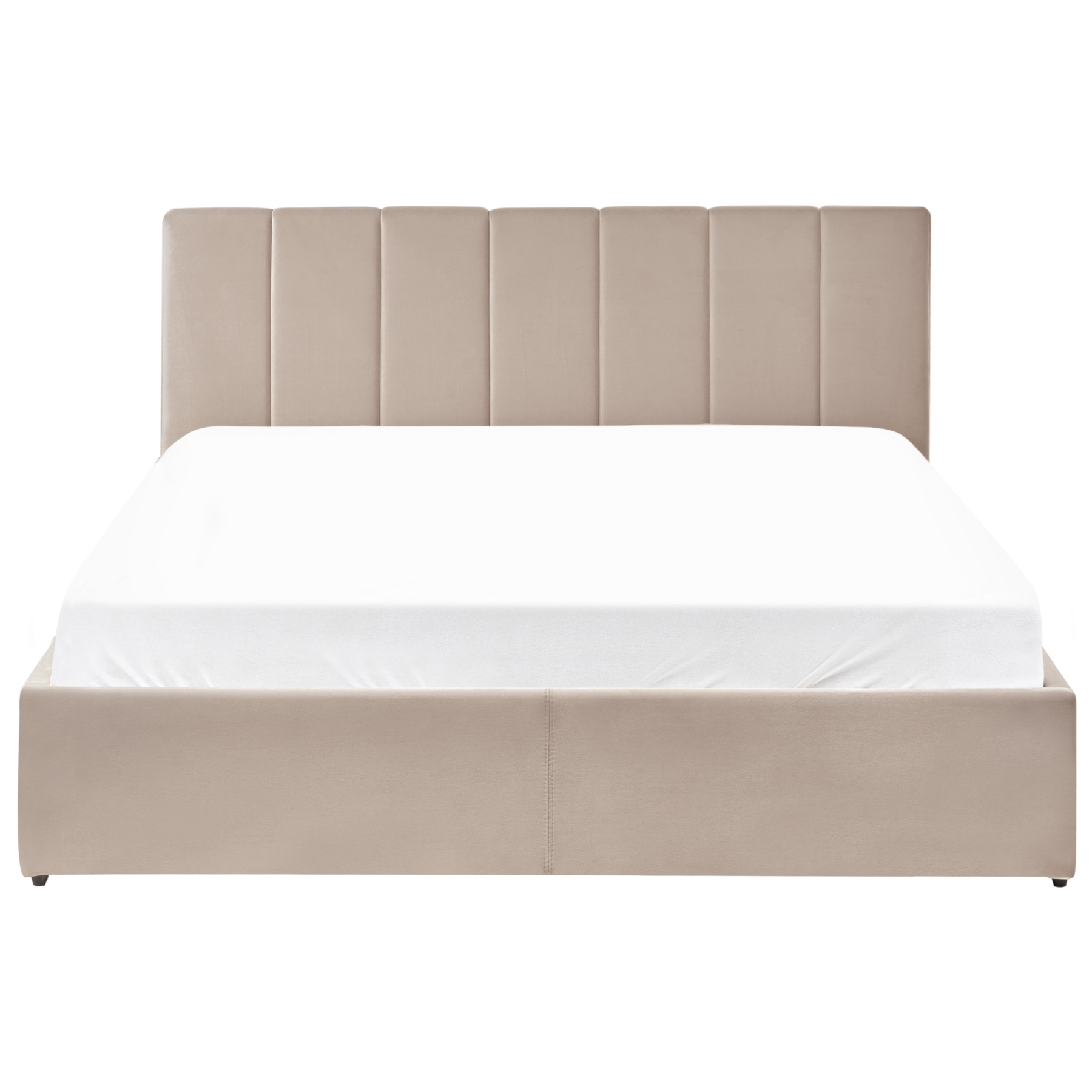 Beliani-DREUX-Bed met opbergruimte-Taupe-160 x 200 cm-Fluweel