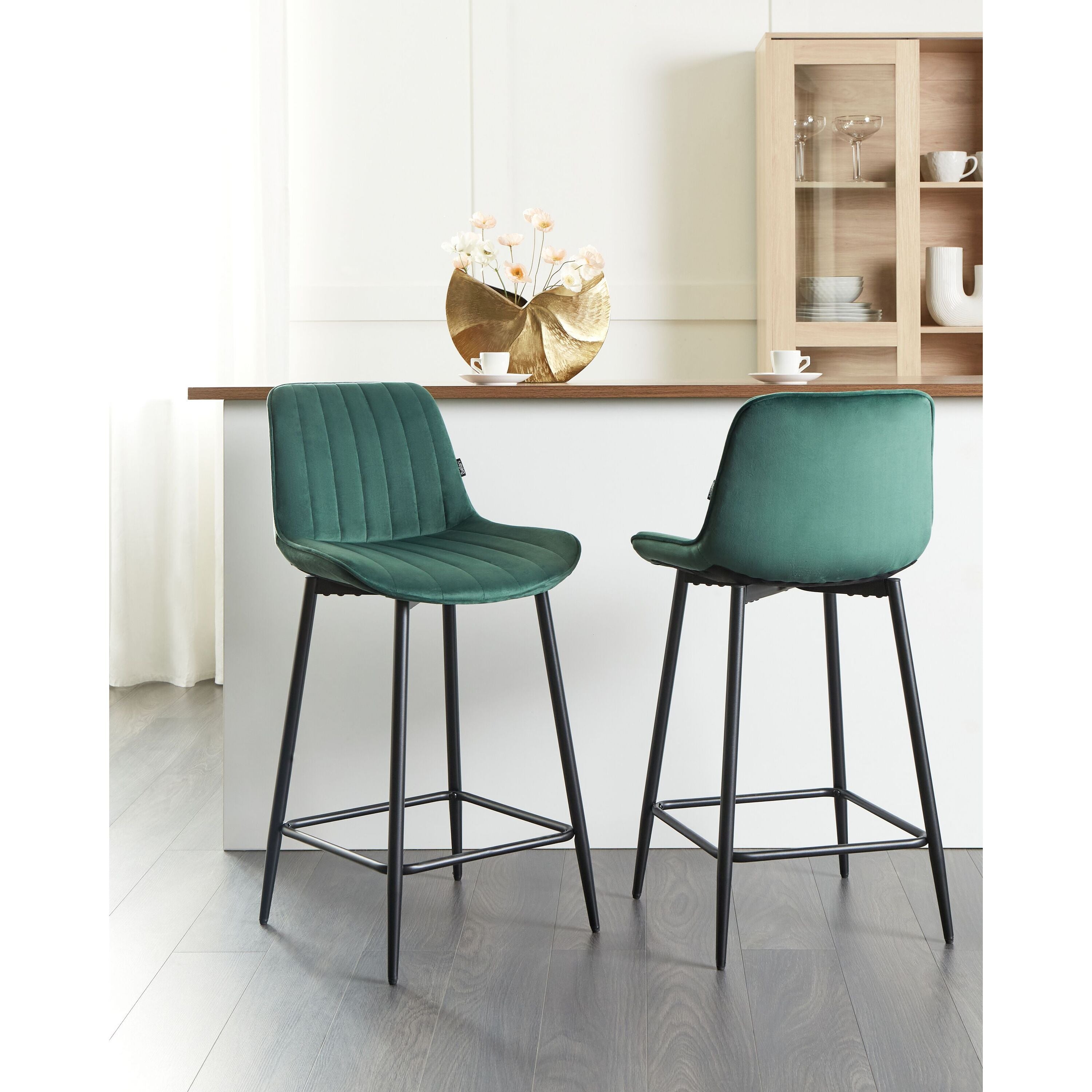 Beliani - DUBROVNIK - Barkruk set van 2 - Smaragdgroen - Fluweel