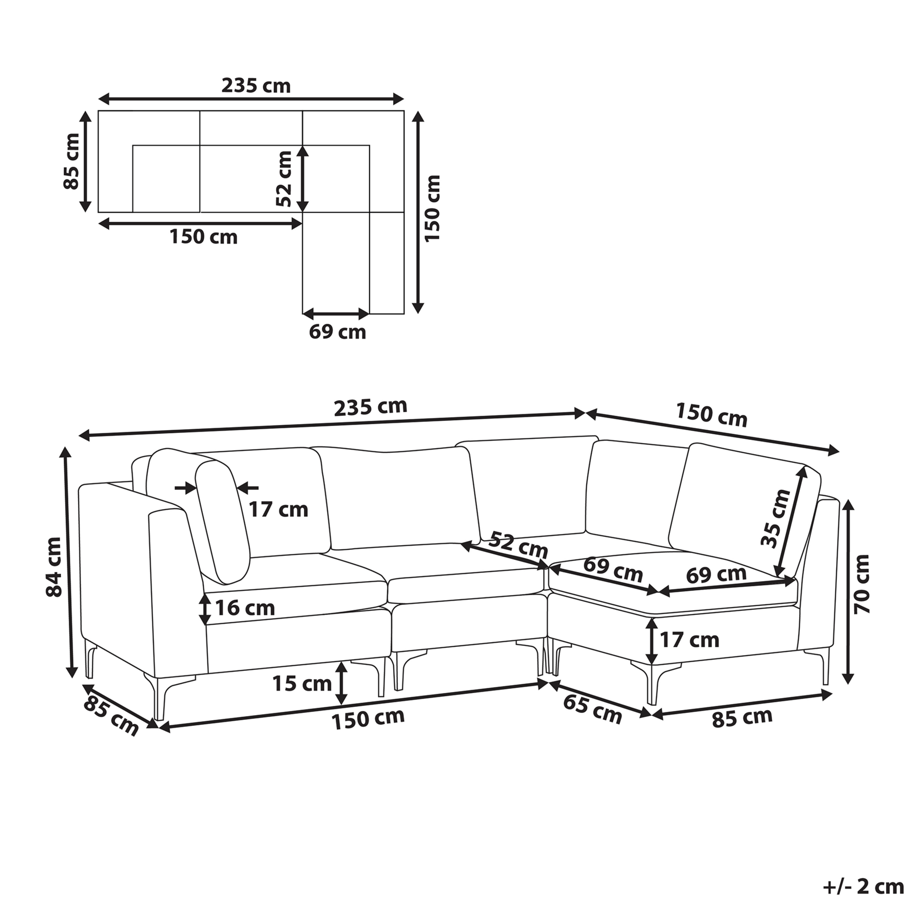 Beliani - EVJA - Hoekbank 4-zits - Roze - Linkerzijde - Fluweel