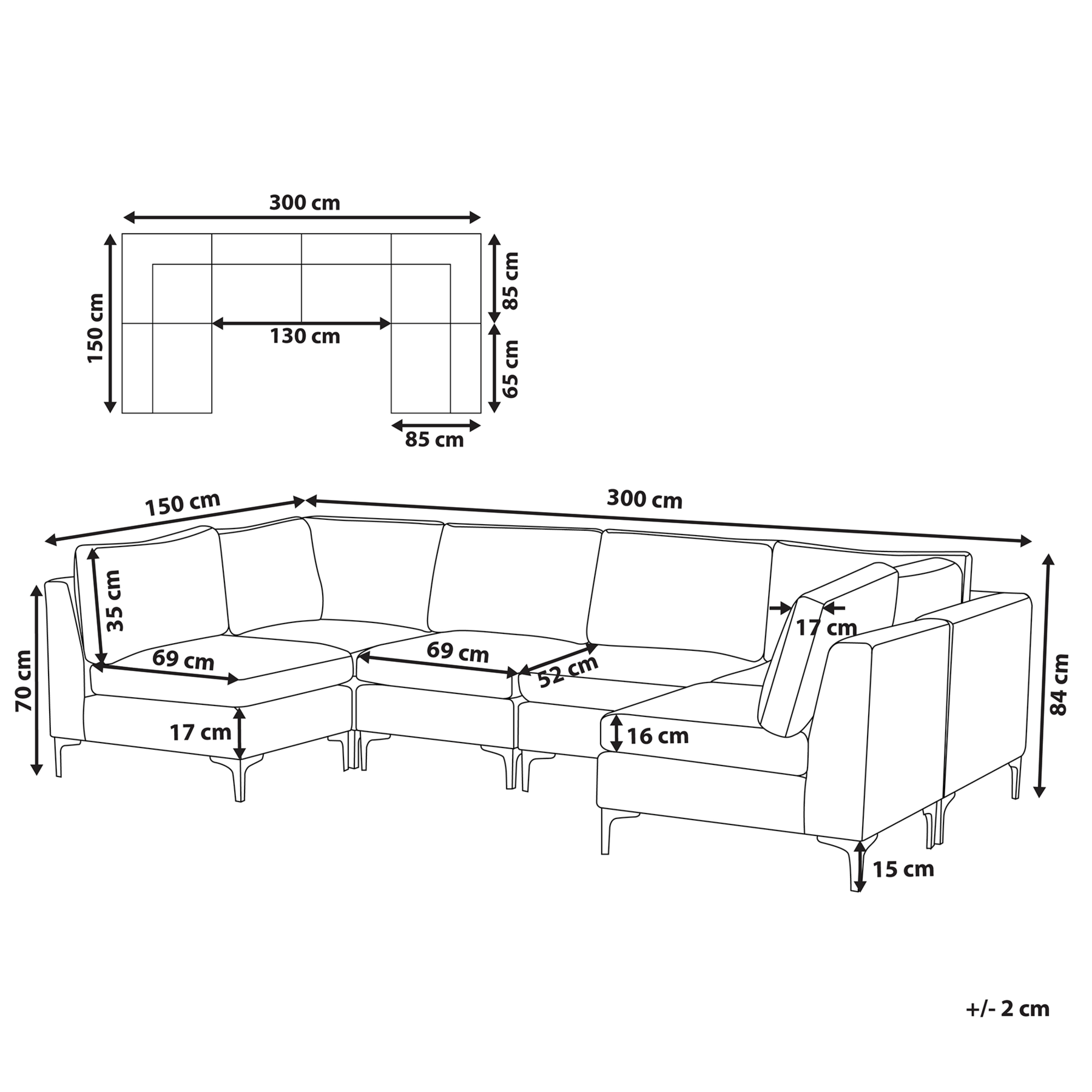 Beliani - EVJA - Hoekbank 6-zits - Marineblauw - Fluweel