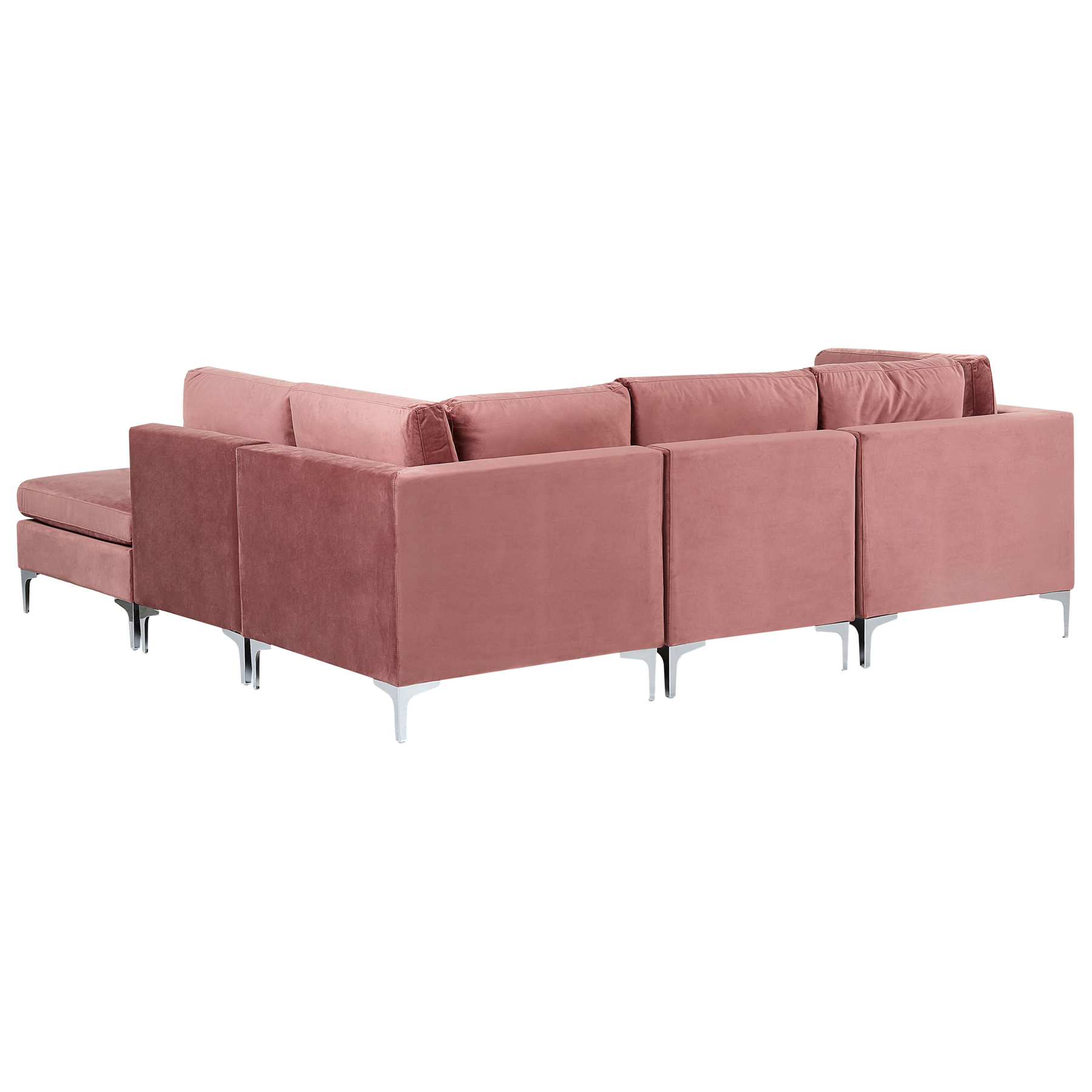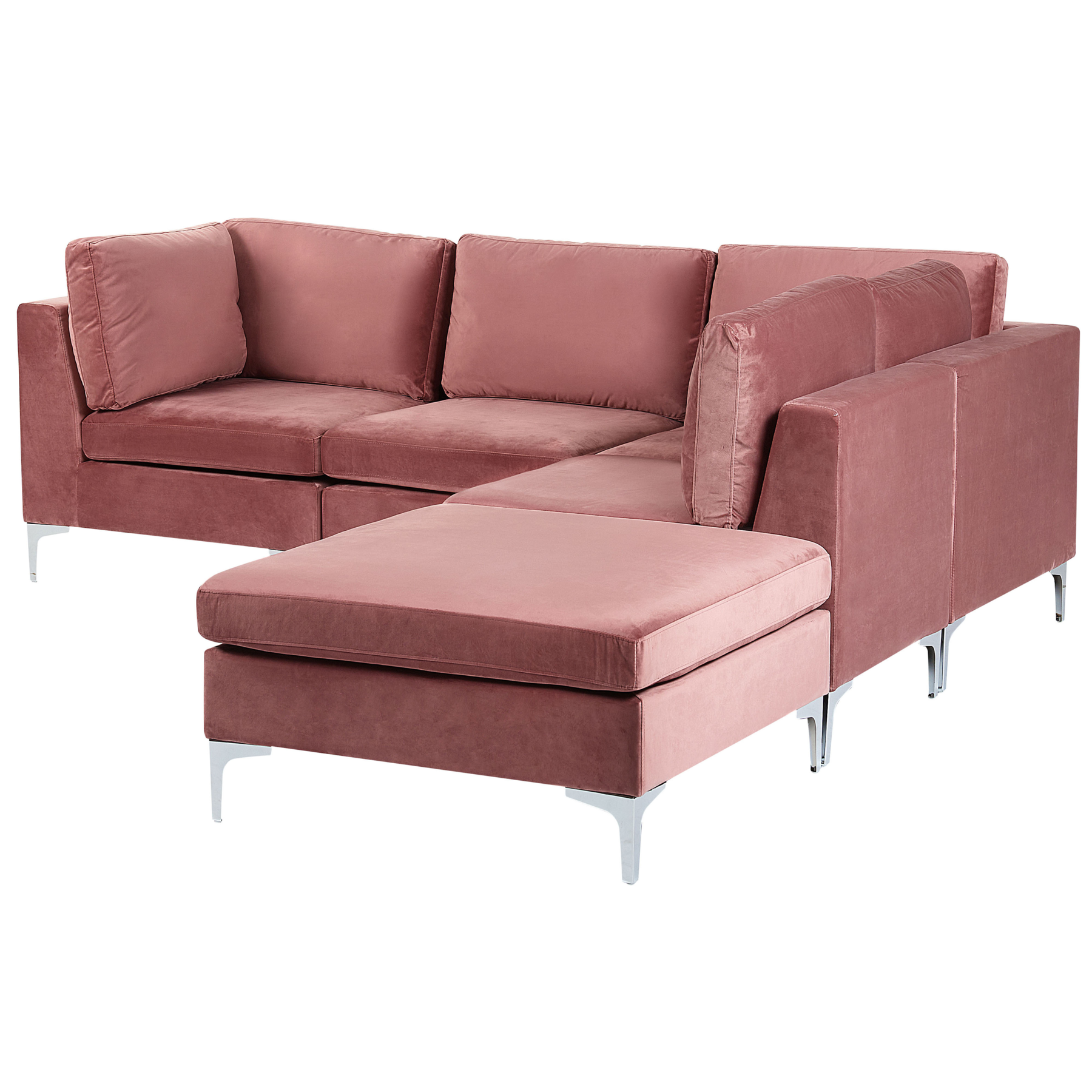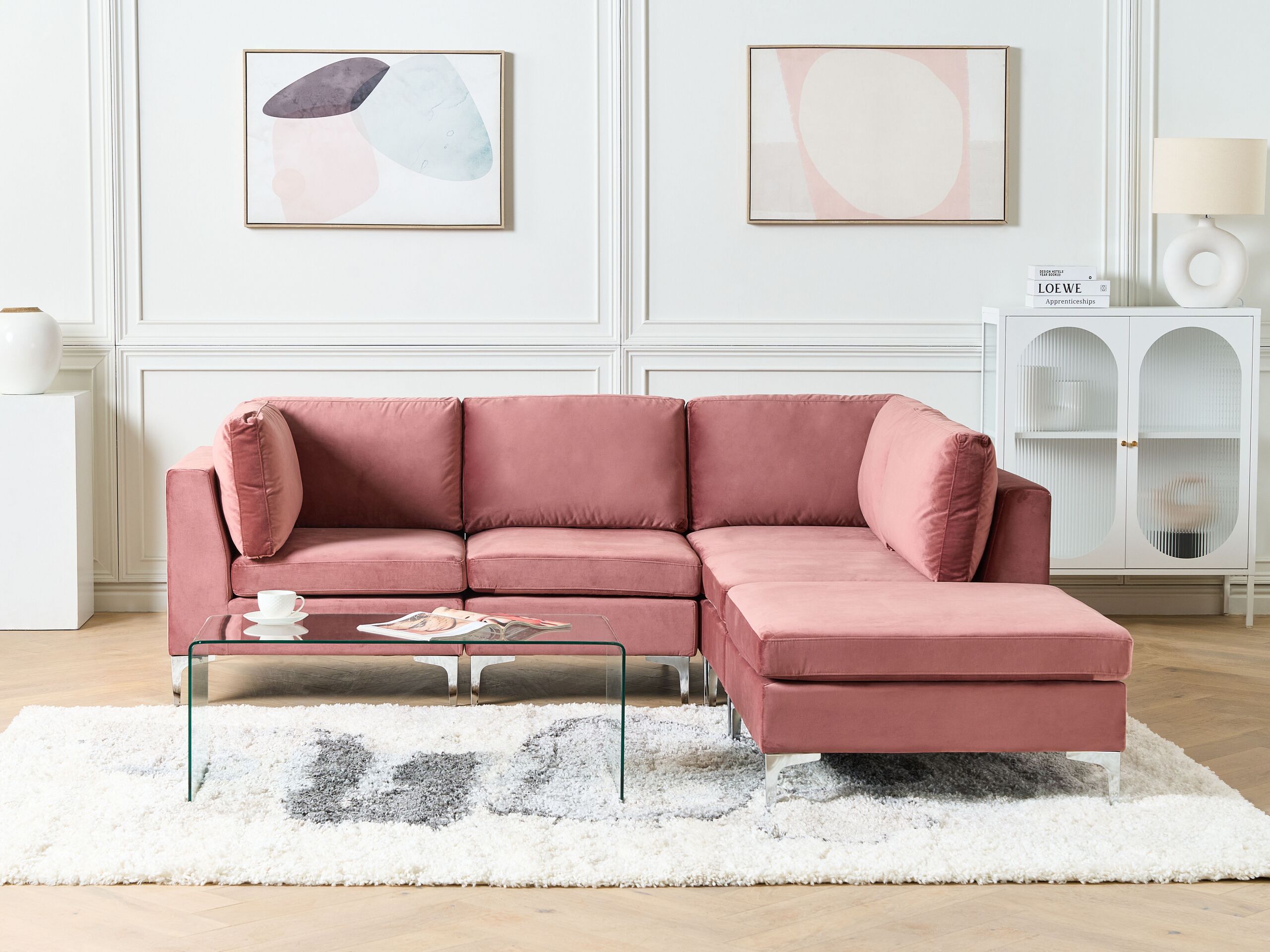 Beliani-EVJA-Hoekbank met ottomaan 4-zits-Roze-Linkerzijde-Fluweel