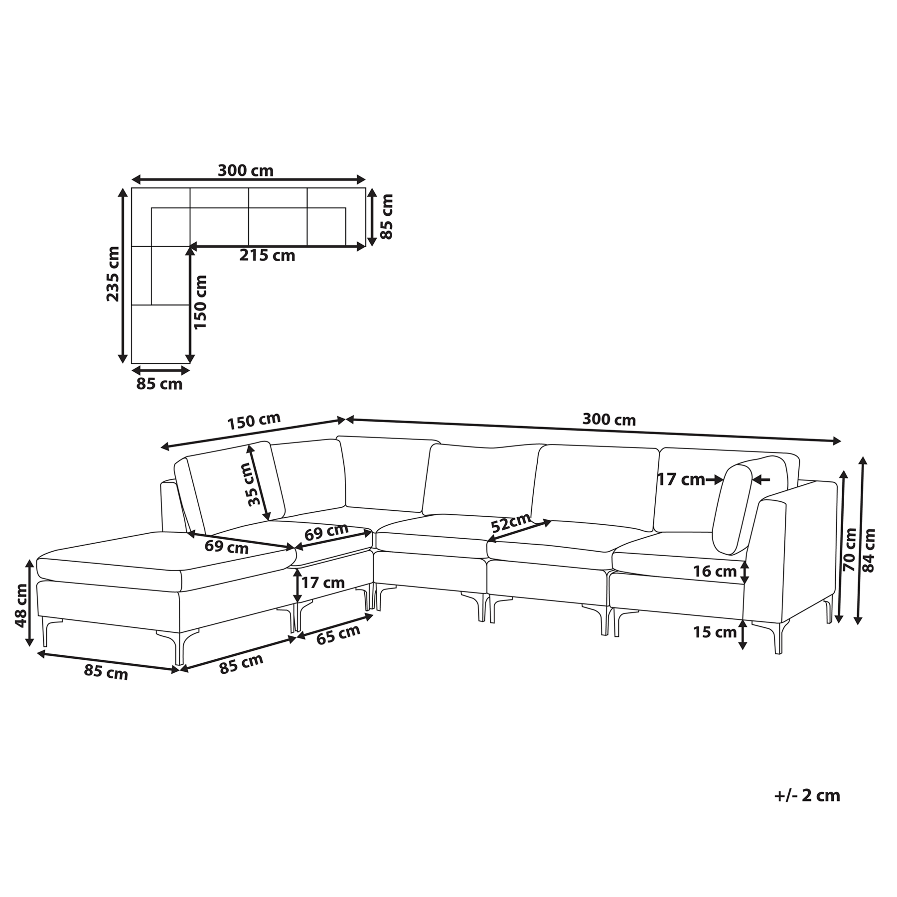 Beliani-EVJA-Hoekbank met ottomaan 5-zits-Marineblauw-Rechts-Fluweel