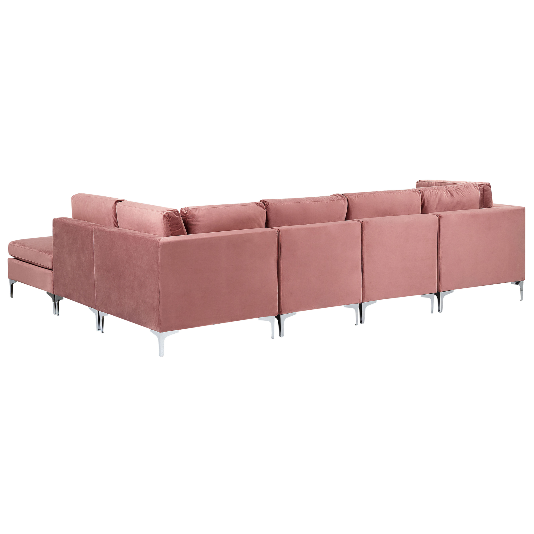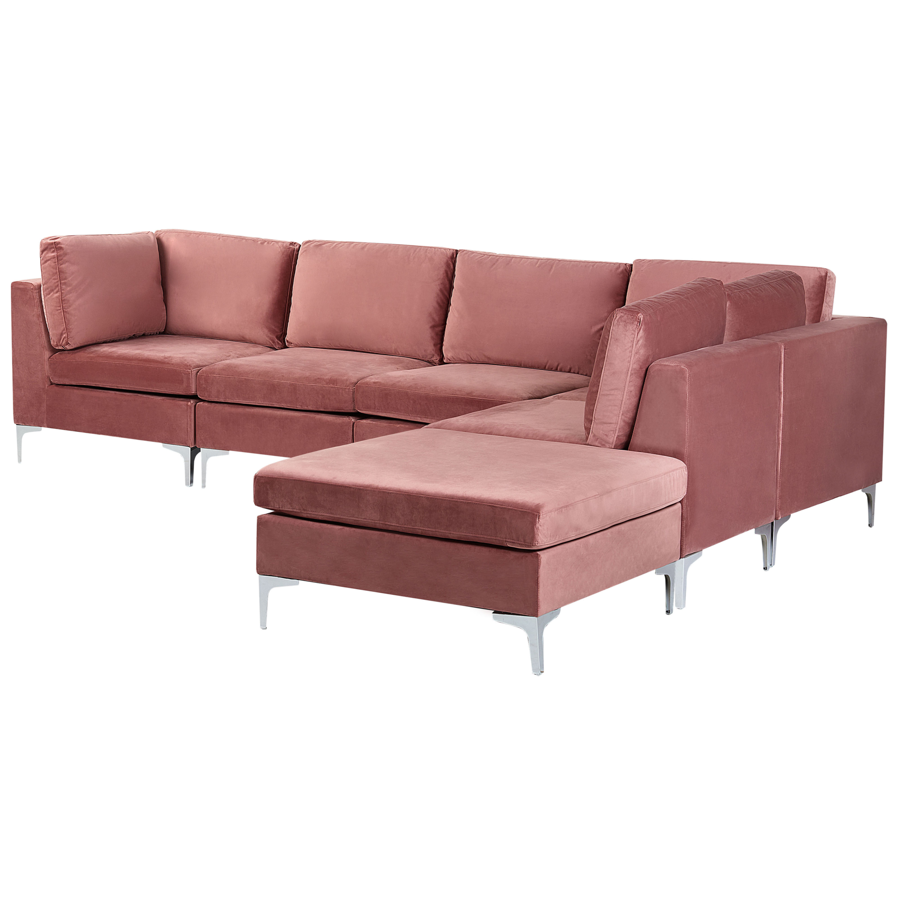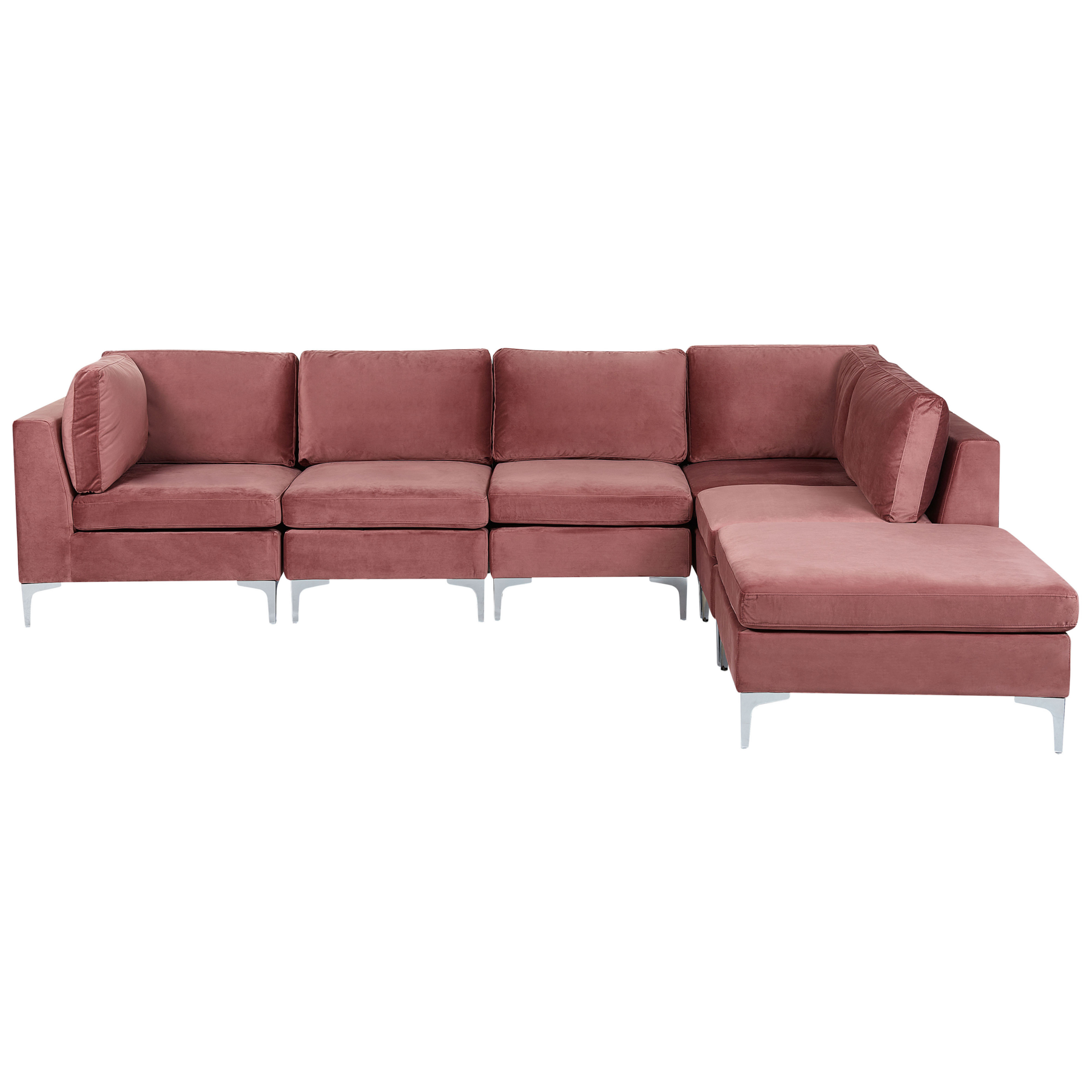 Beliani-EVJA-Hoekbank met ottomaan 5-zits-Roze-Linkerzijde-Fluweel