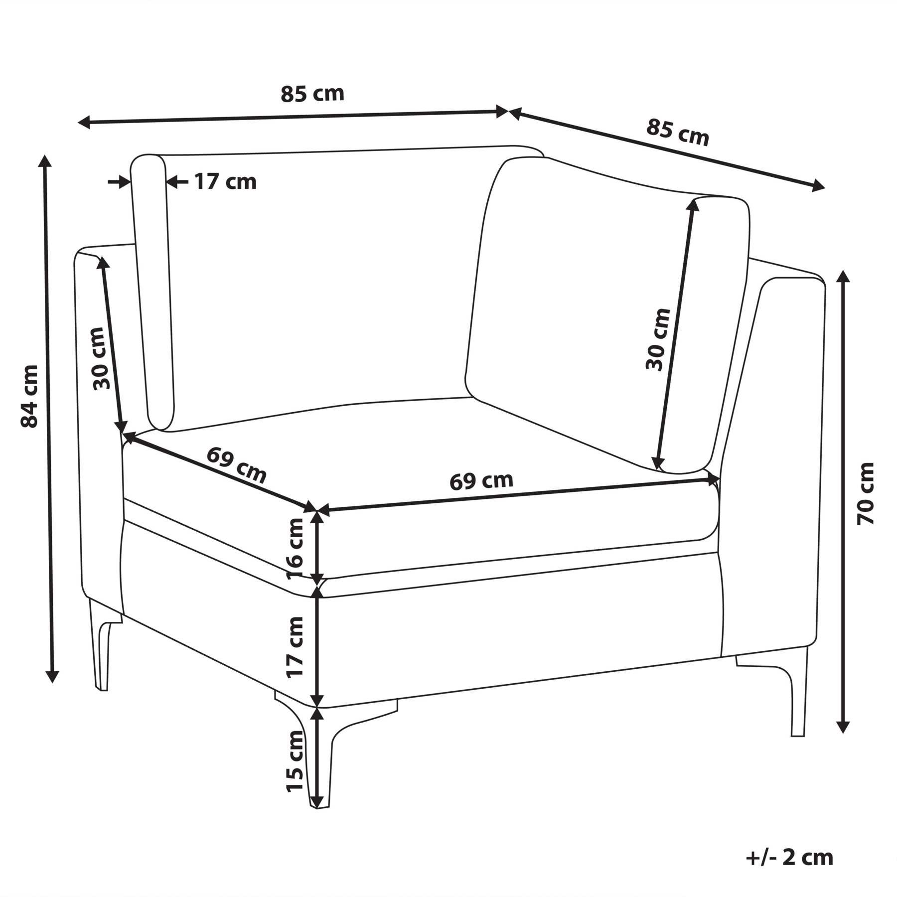 | Hoogte armleuning | 70 cm |