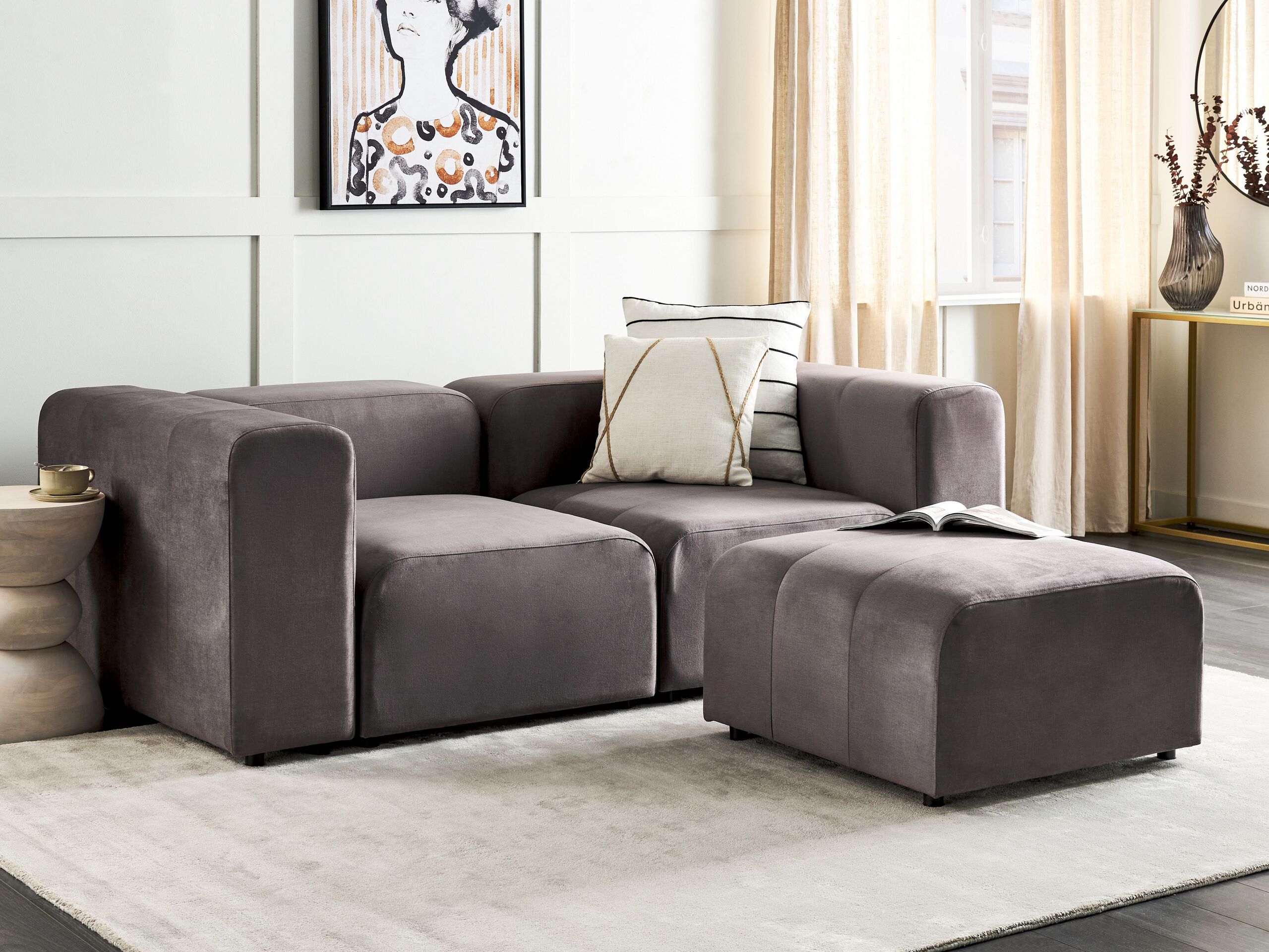 Beliani-FALSTERBO-Tweezitsbank met ottomaan-Donkergrijs-Fluweel