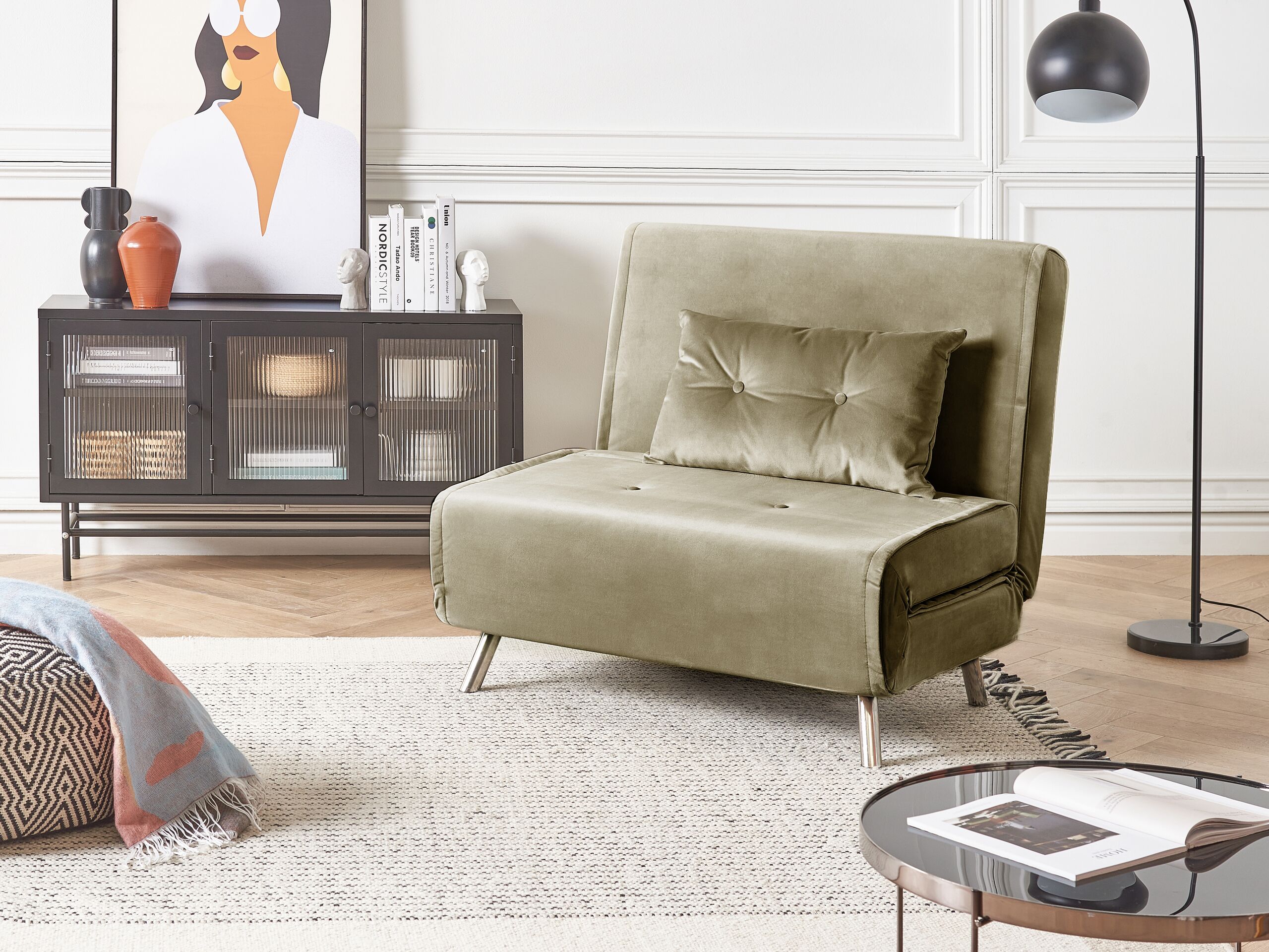 Beliani - FARRIS - Slaapbank 1-zits - Olijfgroen - Fluweel
