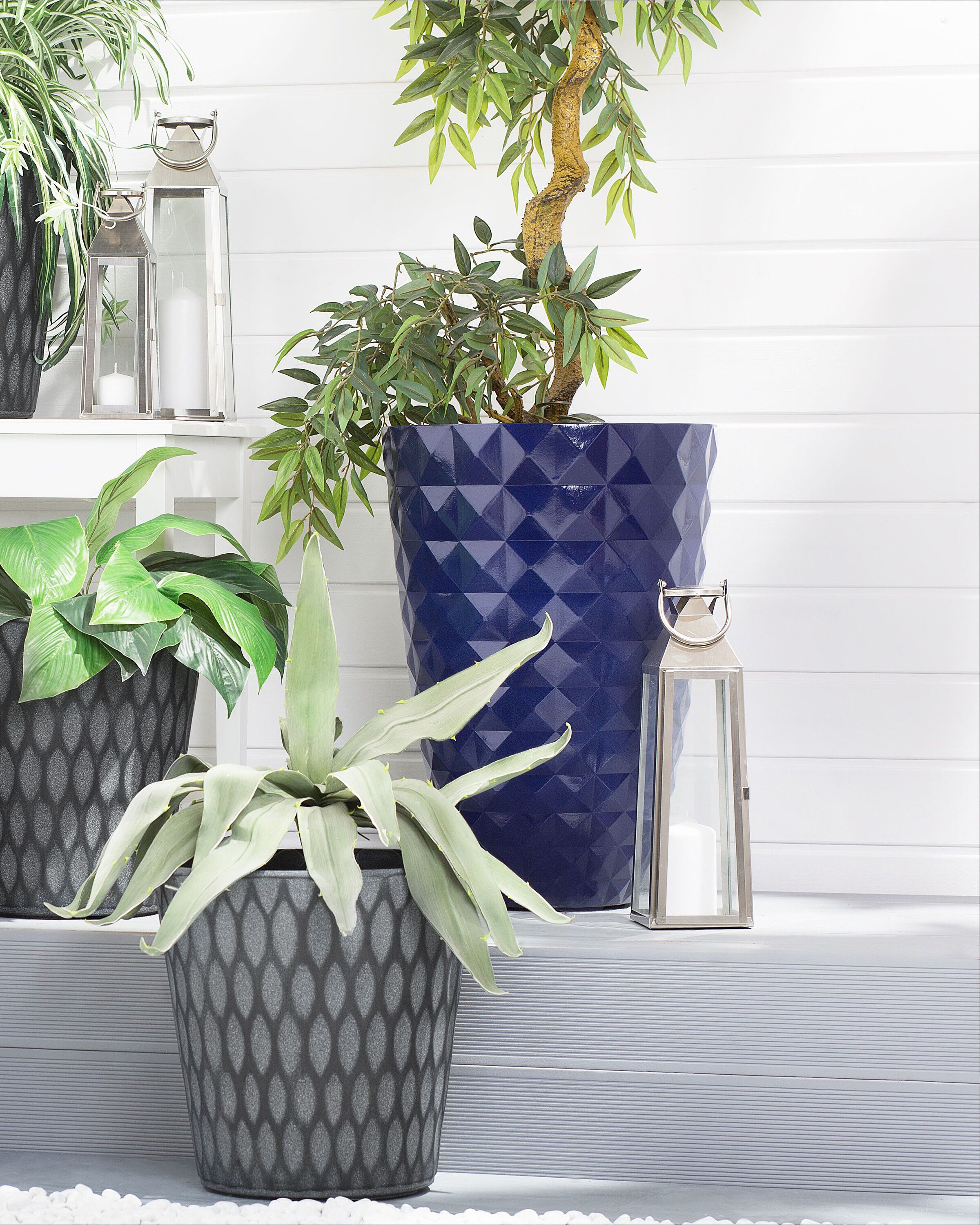 Beliani-FERIZA-Plantenbak-Marineblauw-35 cm-Klei-vezelmengsel