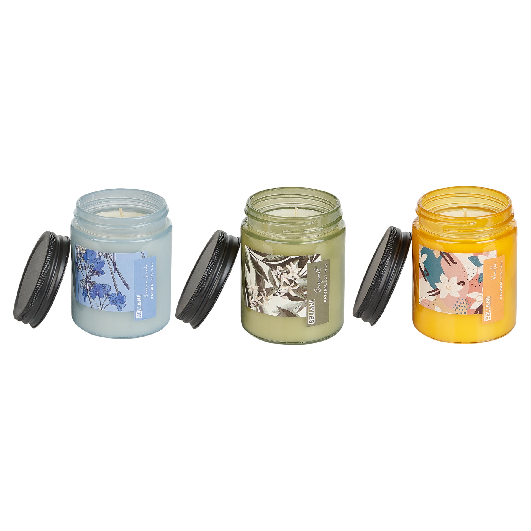 Beliani-FRUITY BLOOM-Geurkaars set-Bergamot|Vanille|Lavendel- Soja wax
