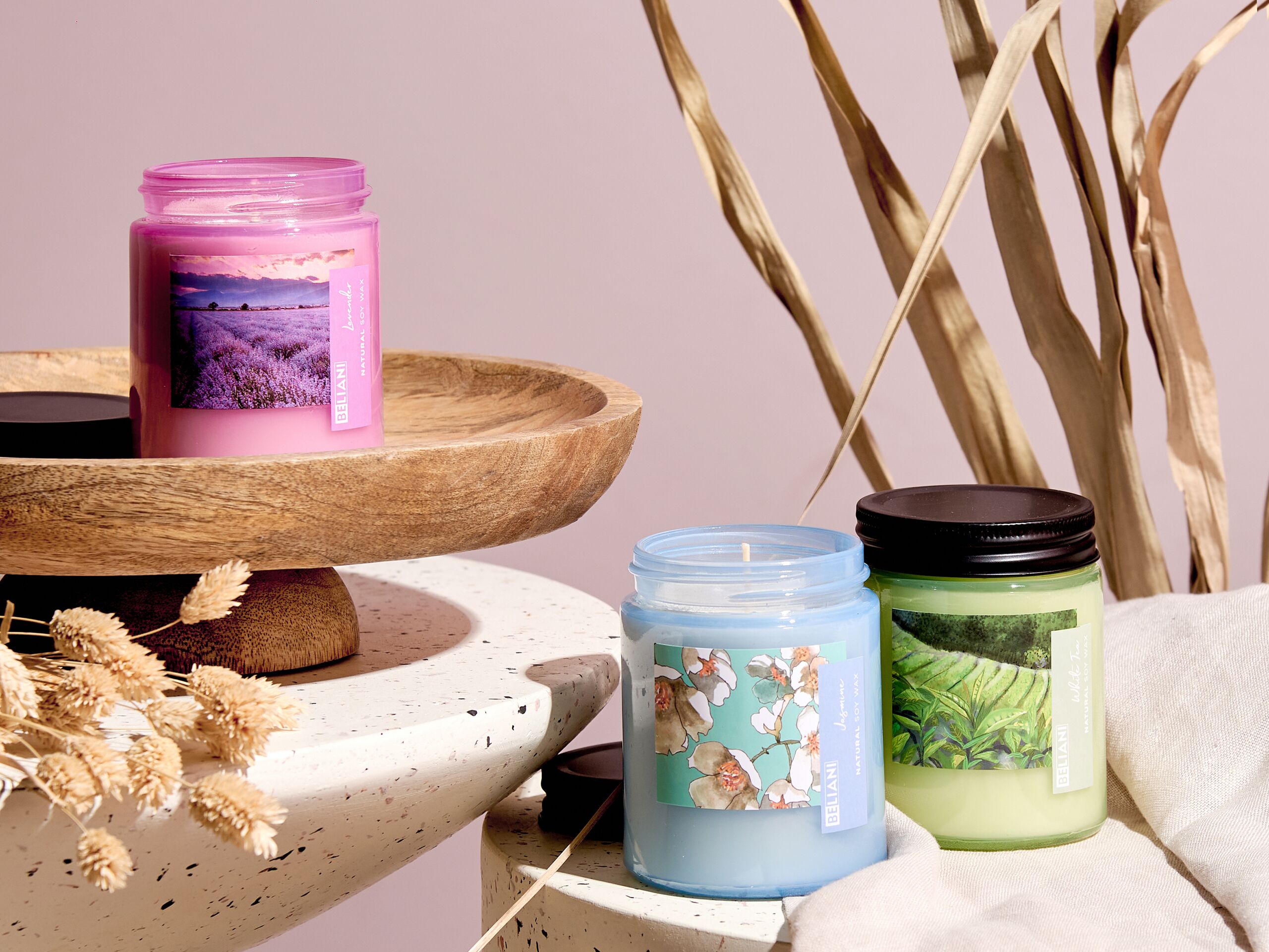Beliani-FRUITY BLOOM-Geurkaars set-Witte thee|Lavendel|Jasmijn-Soja wax