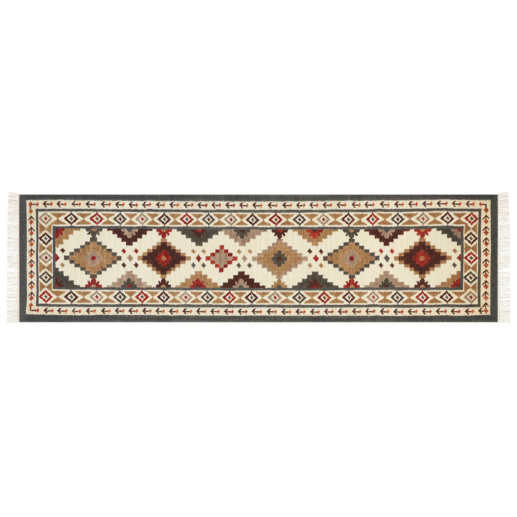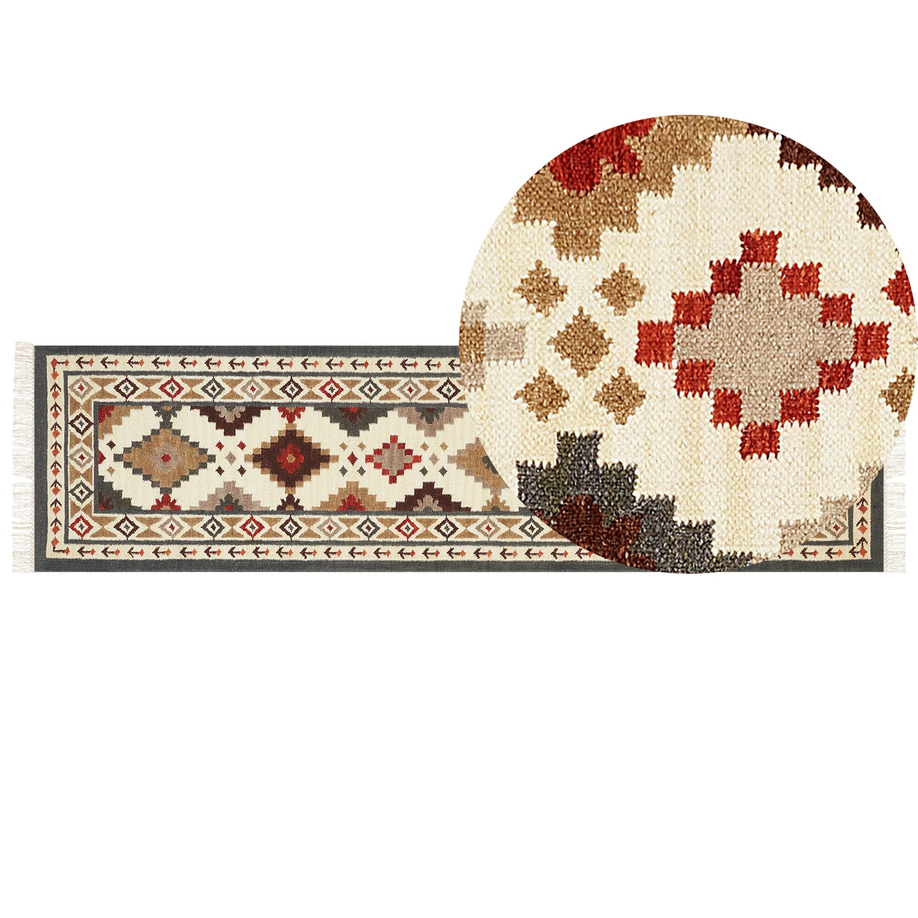 Beliani-GHUKASAVAN-Kelim vloerkleed-Mosterdgeel-80 x 300 cm-Wol