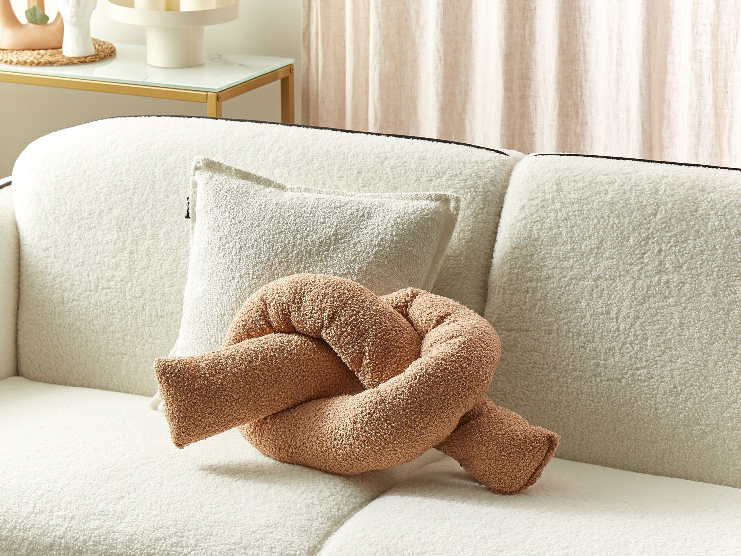 Beliani - GLADIOLUS - Knoopkussen - Lichtbruin - Teddystof