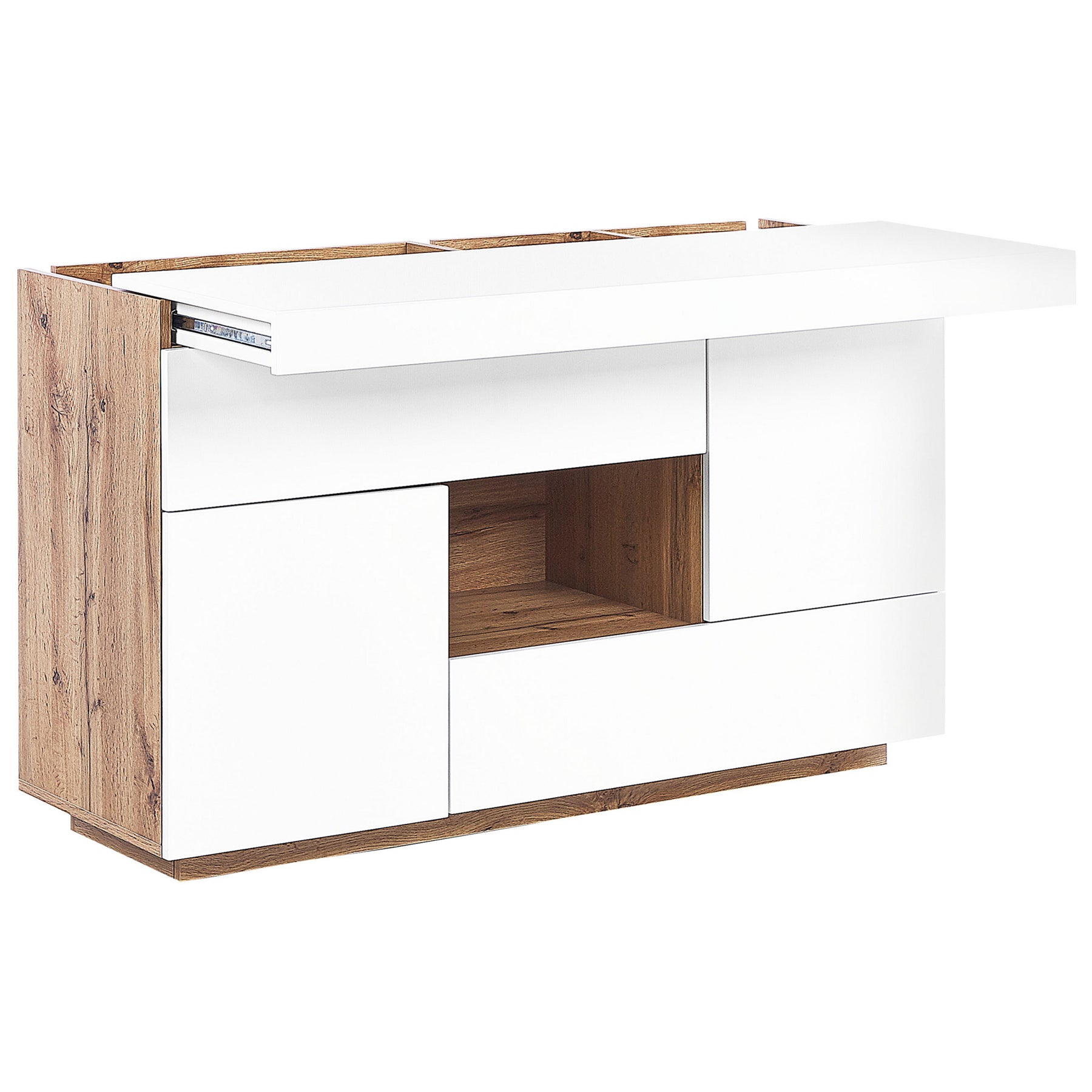 - Met uittrekbaar blad, te gebruiken als bureau