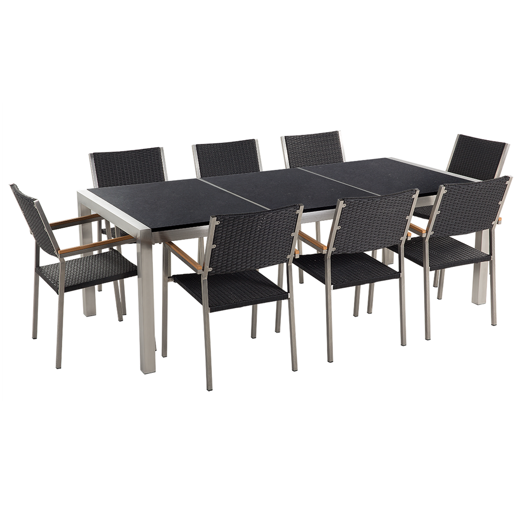 Beliani - GROSSETO - Tuinset voor 8 - Driedelig - Zwart - Graniet