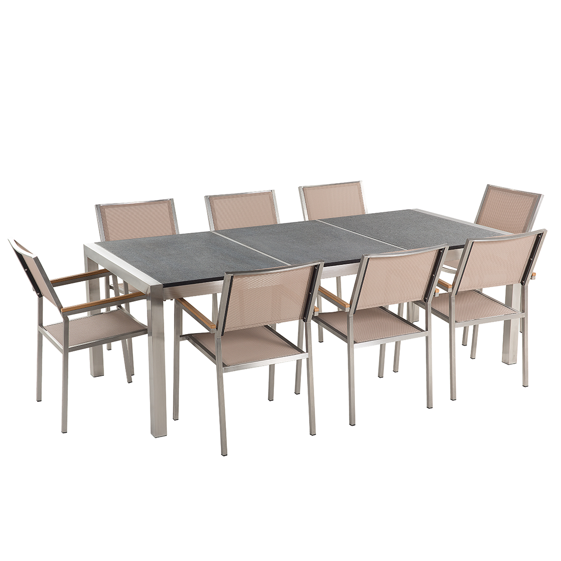 Beliani - GROSSETO - Tuinset voor 8 - Lichtgrijs - Graniet