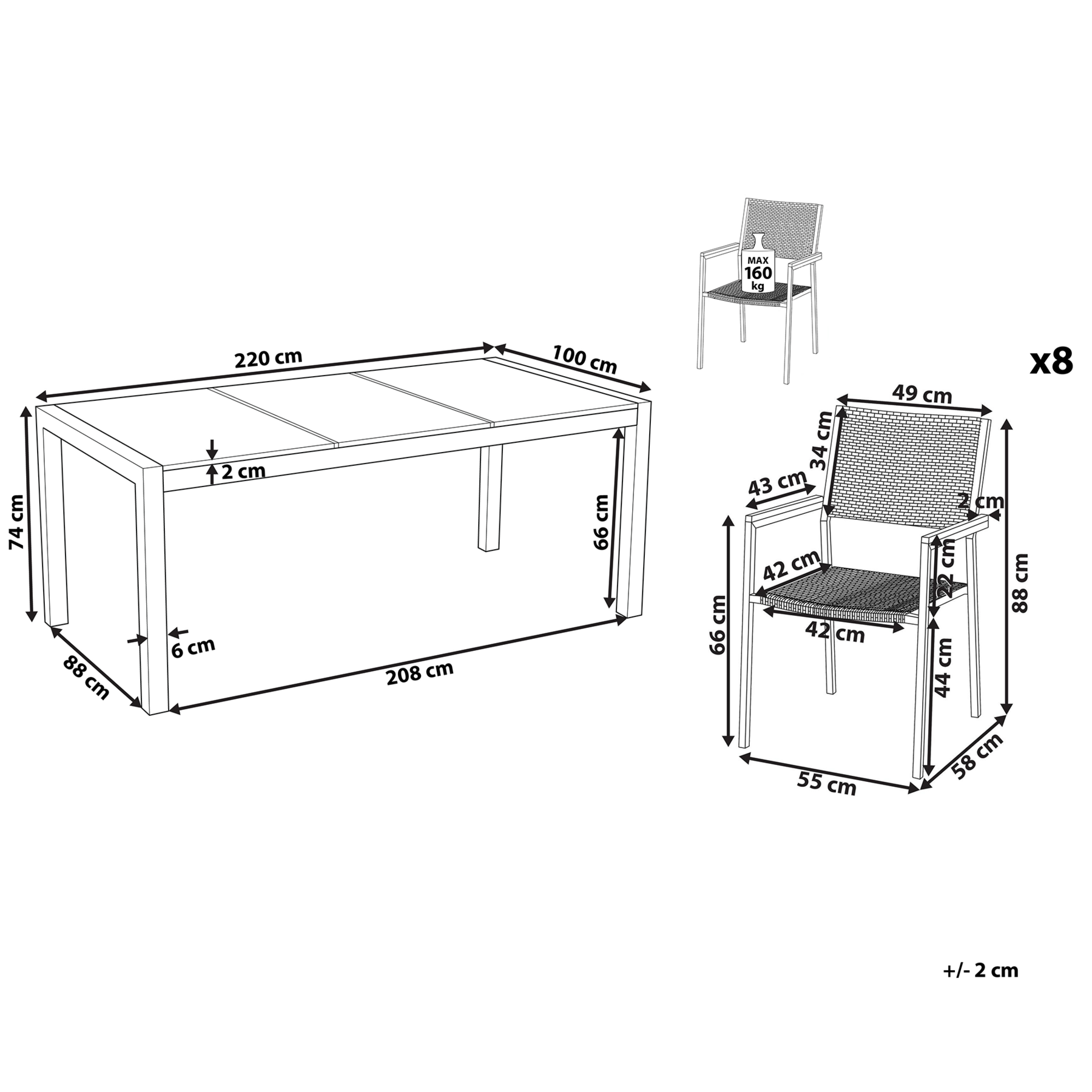 Beliani - GROSSETO - Tuinset voor 8 Rotan - Grijs|Zwart - Graniet
