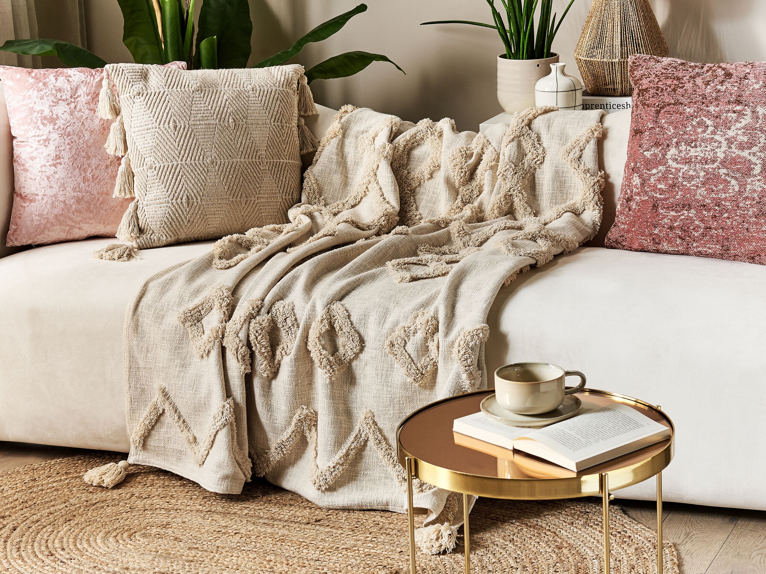 Beliani - GUNA - Plaid - Lichtbeige - 130 x 180 cm - Katoen