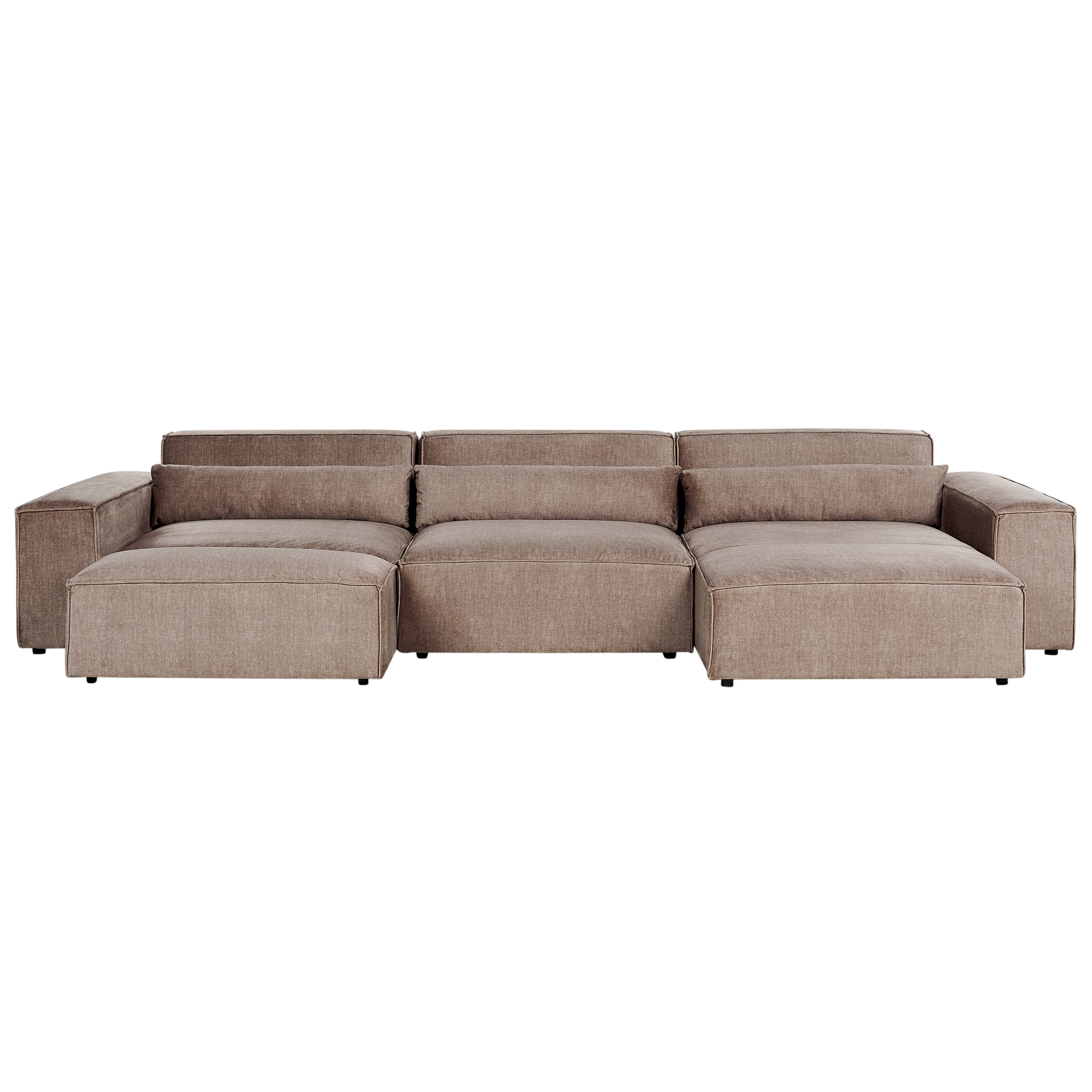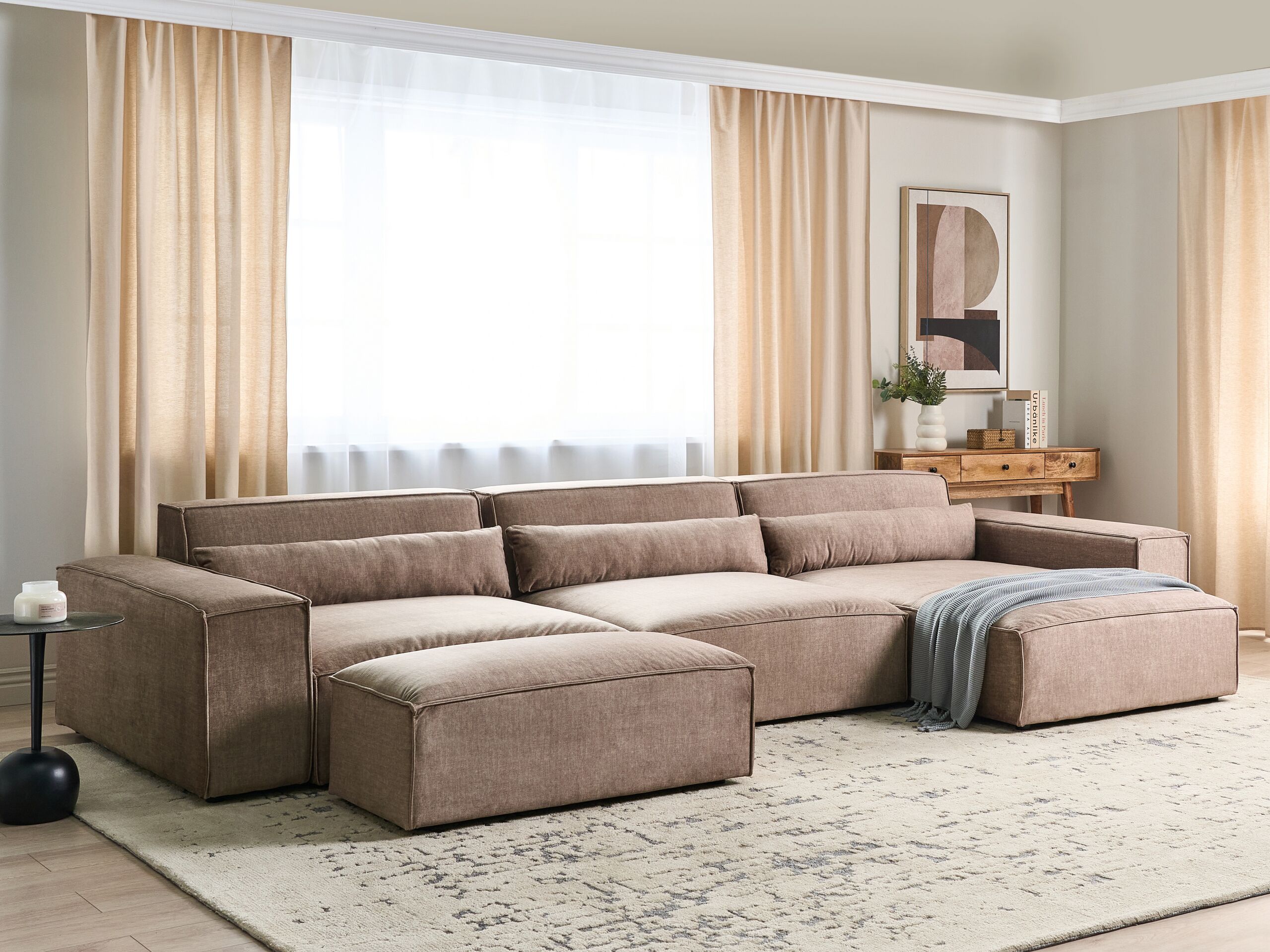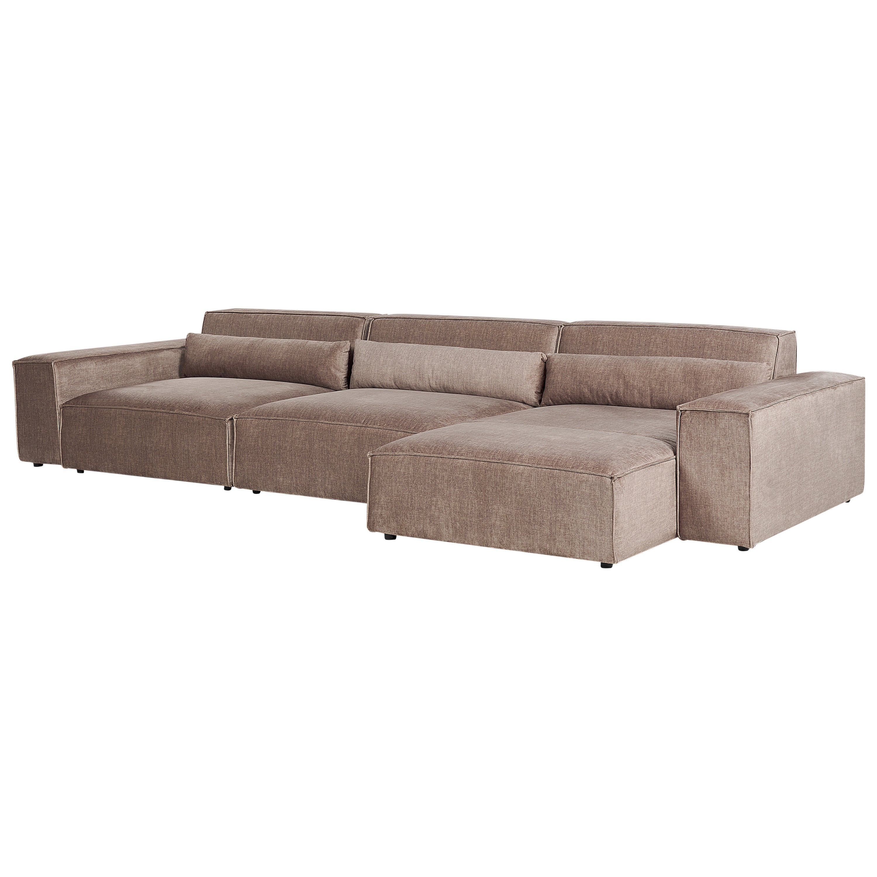 Beliani-HELLNAR-Hoekbank 3-zits ottomaan-Lichtbruin-Links-Polyester