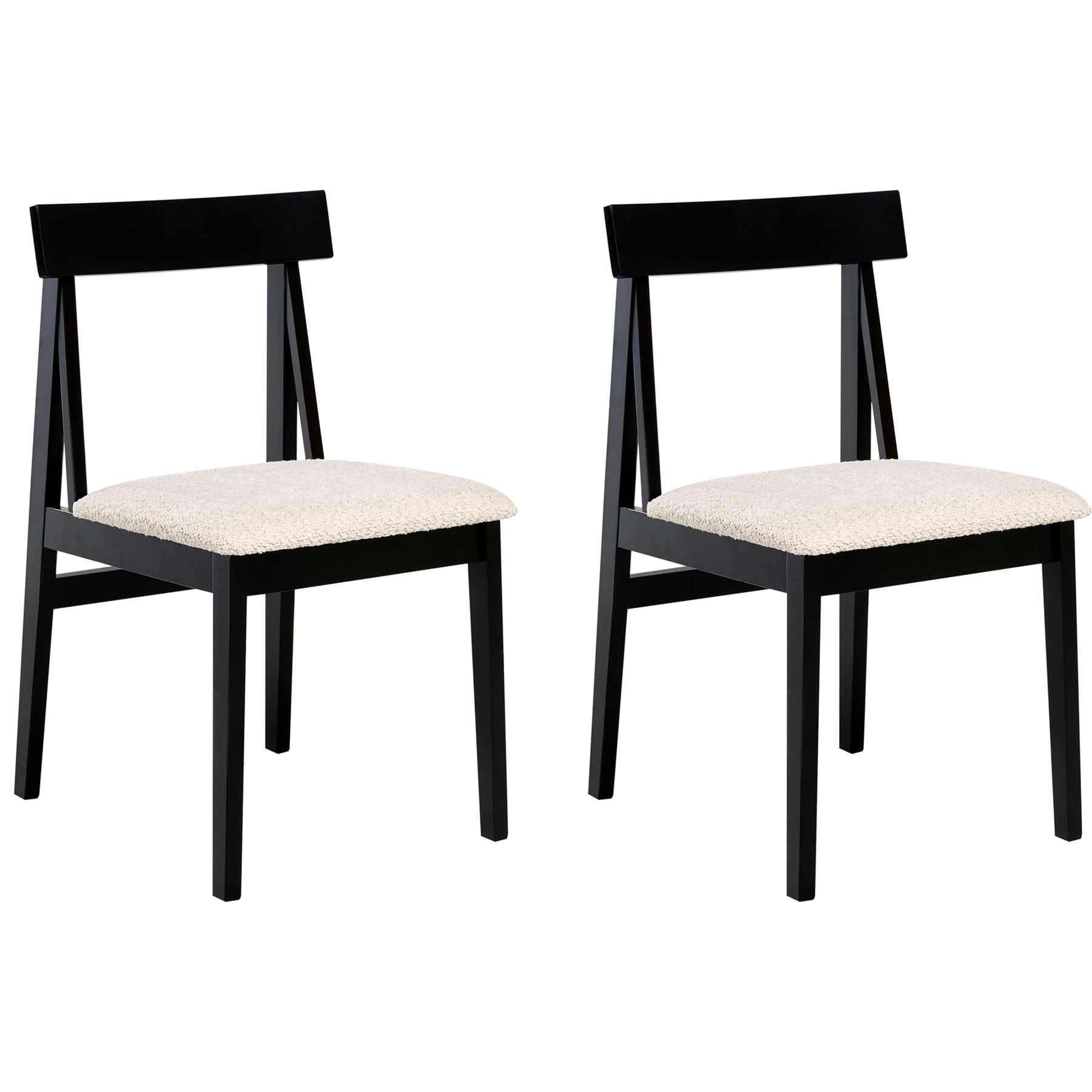 Beliani - ISLE - Eetkamerstoel set van 2 - Zwart|Beige - Rubberhout