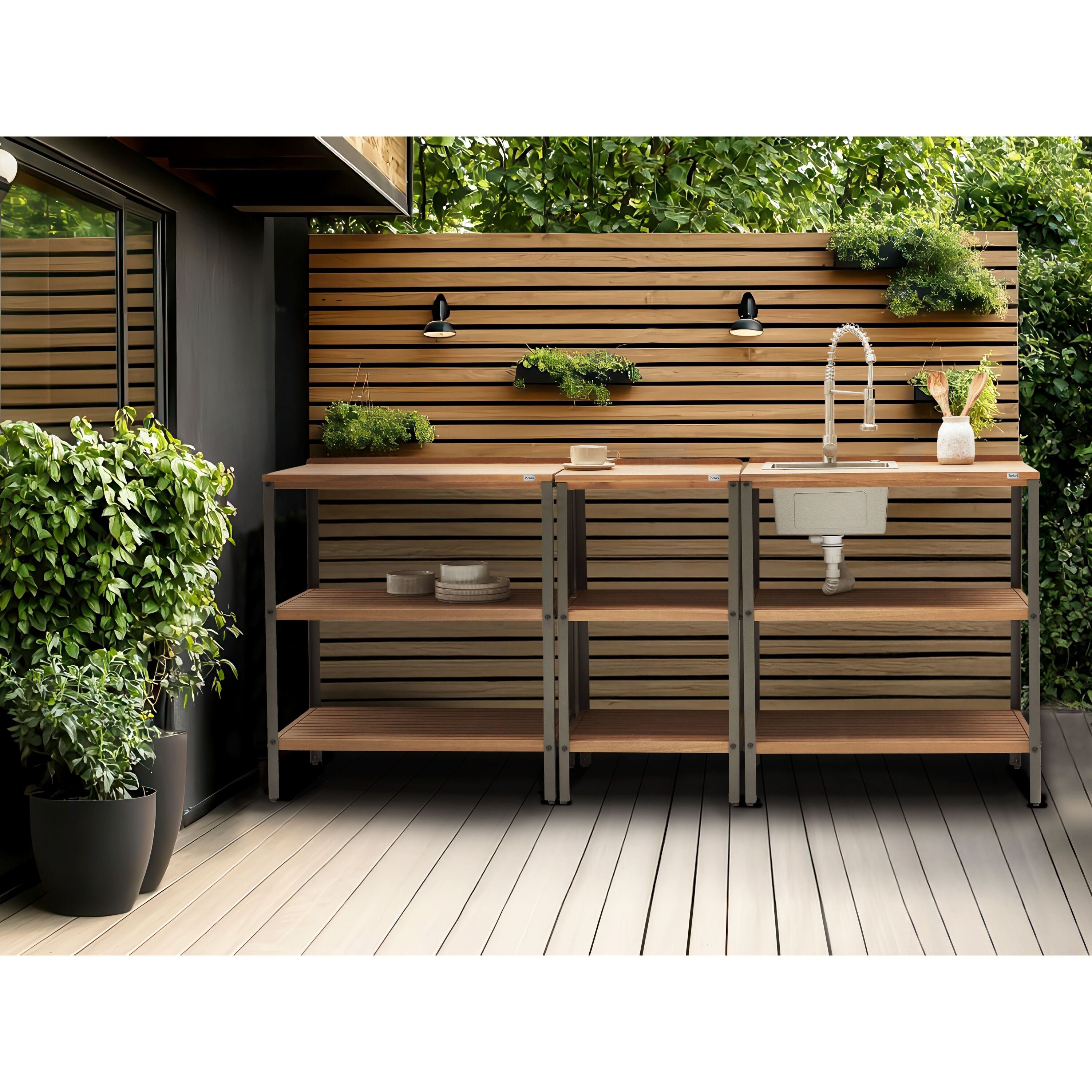 Beliani-IVREA-Buitenkeukeneiland met spoelbak 3-delig-Bruin-Acaciahout