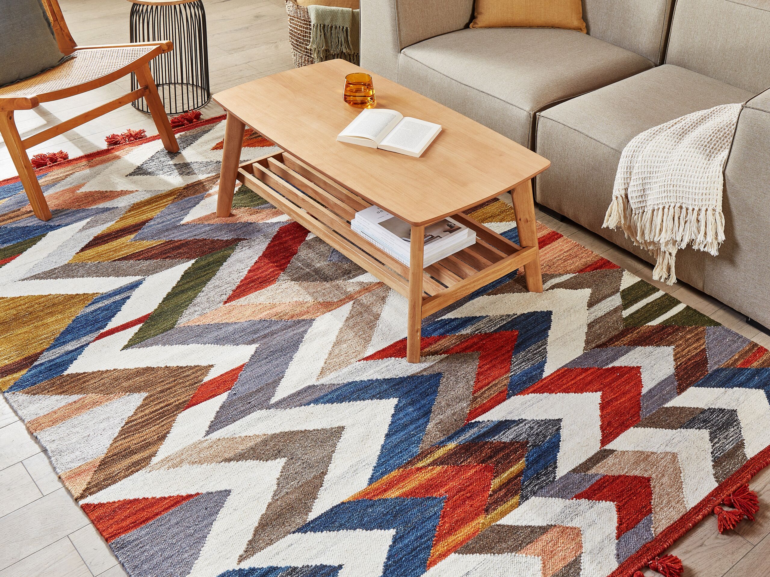 Beliani-KANAKERAVAN-Kelim vloerkleed-Multicolor-160 x 230 cm-Wol