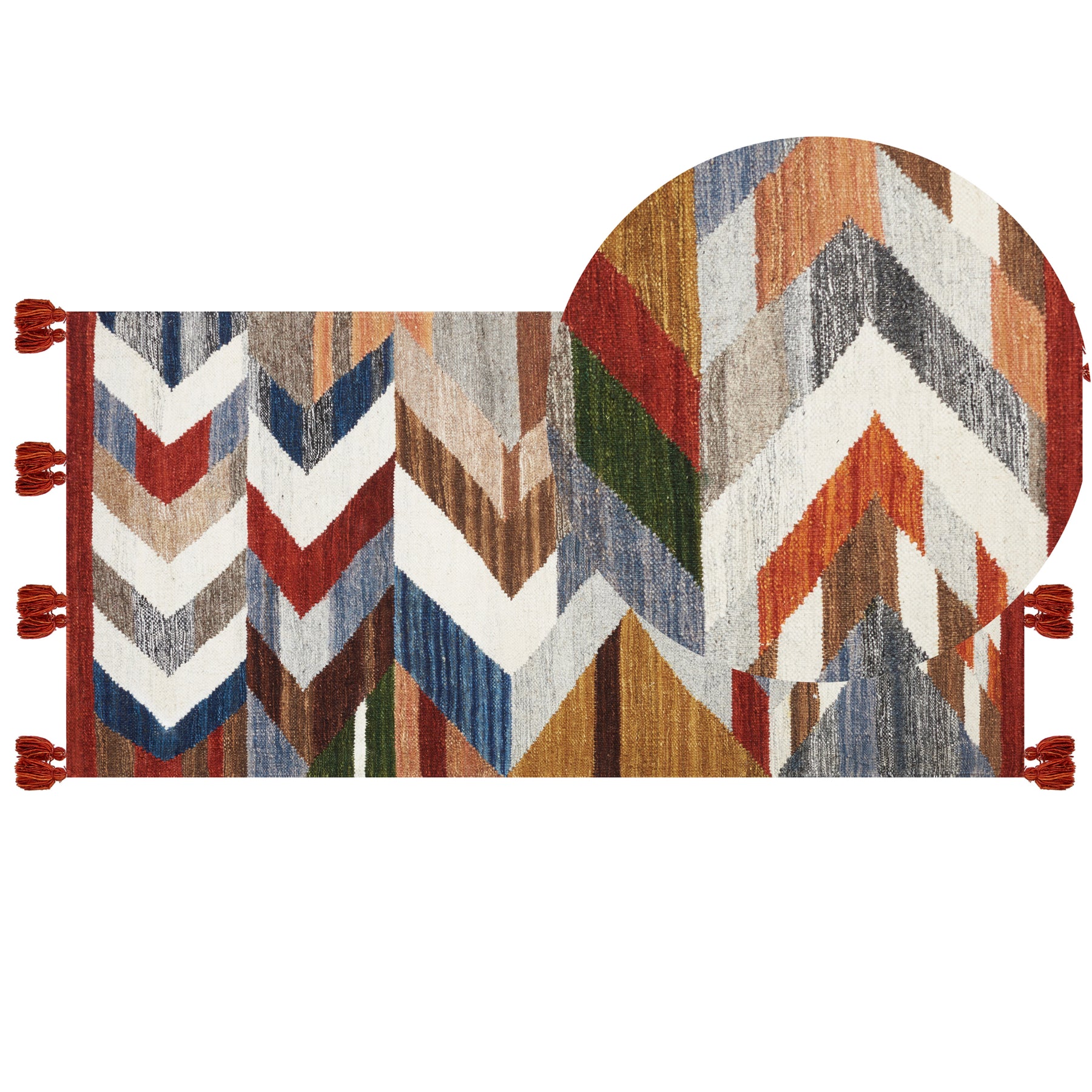 Beliani-KANAKERAVAN-Kelim vloerkleed-Multicolor-80 x 150 cm-Wol