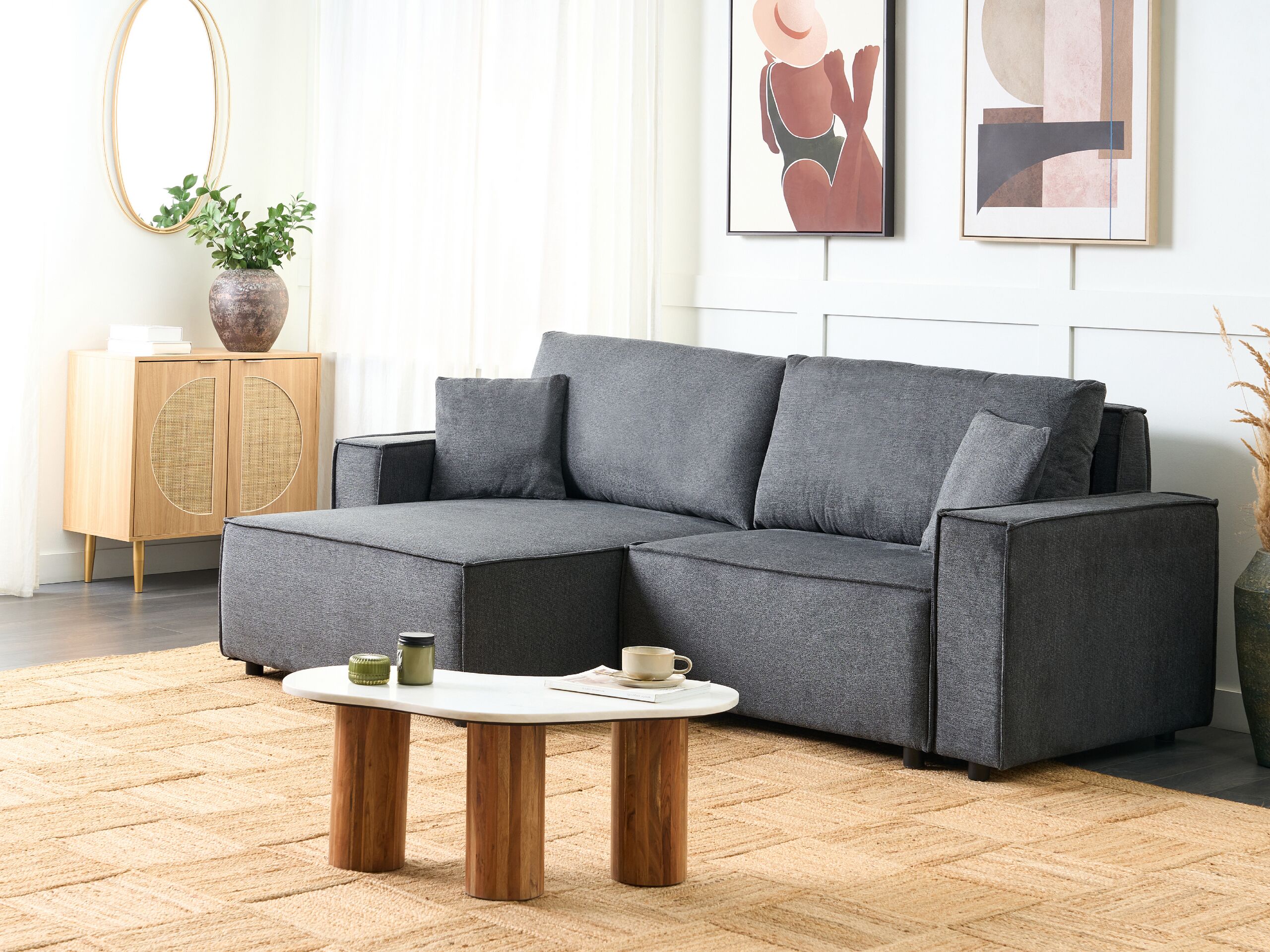 Beliani-KARILA-Hoekbank met slaapfunctie-Donkergrijs-Rechts-Polyester