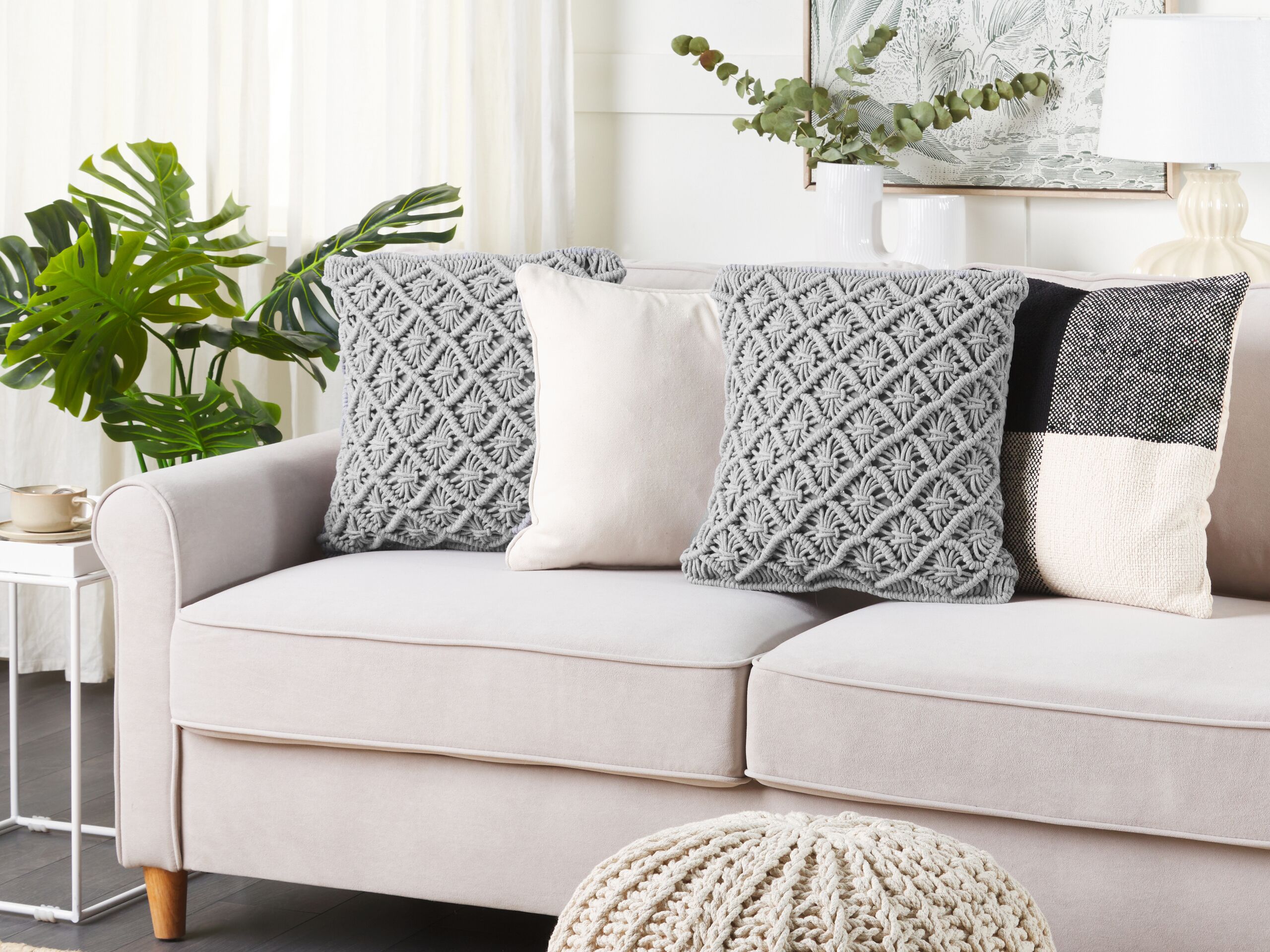 Beliani-KIZKALESI -Sierkussen set van 2-Grijs-45 x 40 cm-Katoen