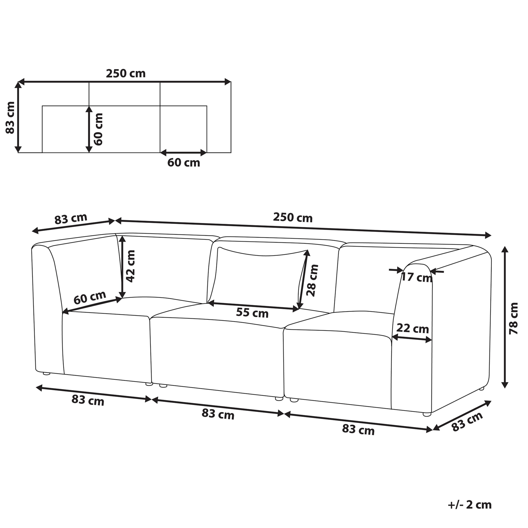 | Maat | 83x250x78 |