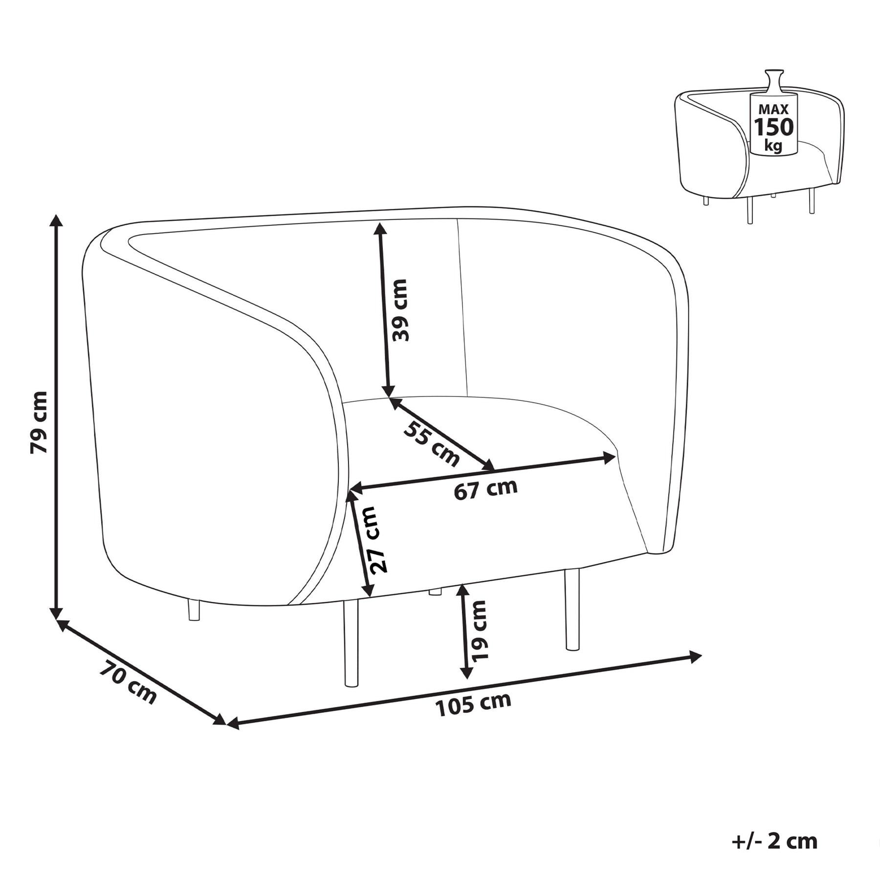 | Hoogte armleuning | 79 cm |