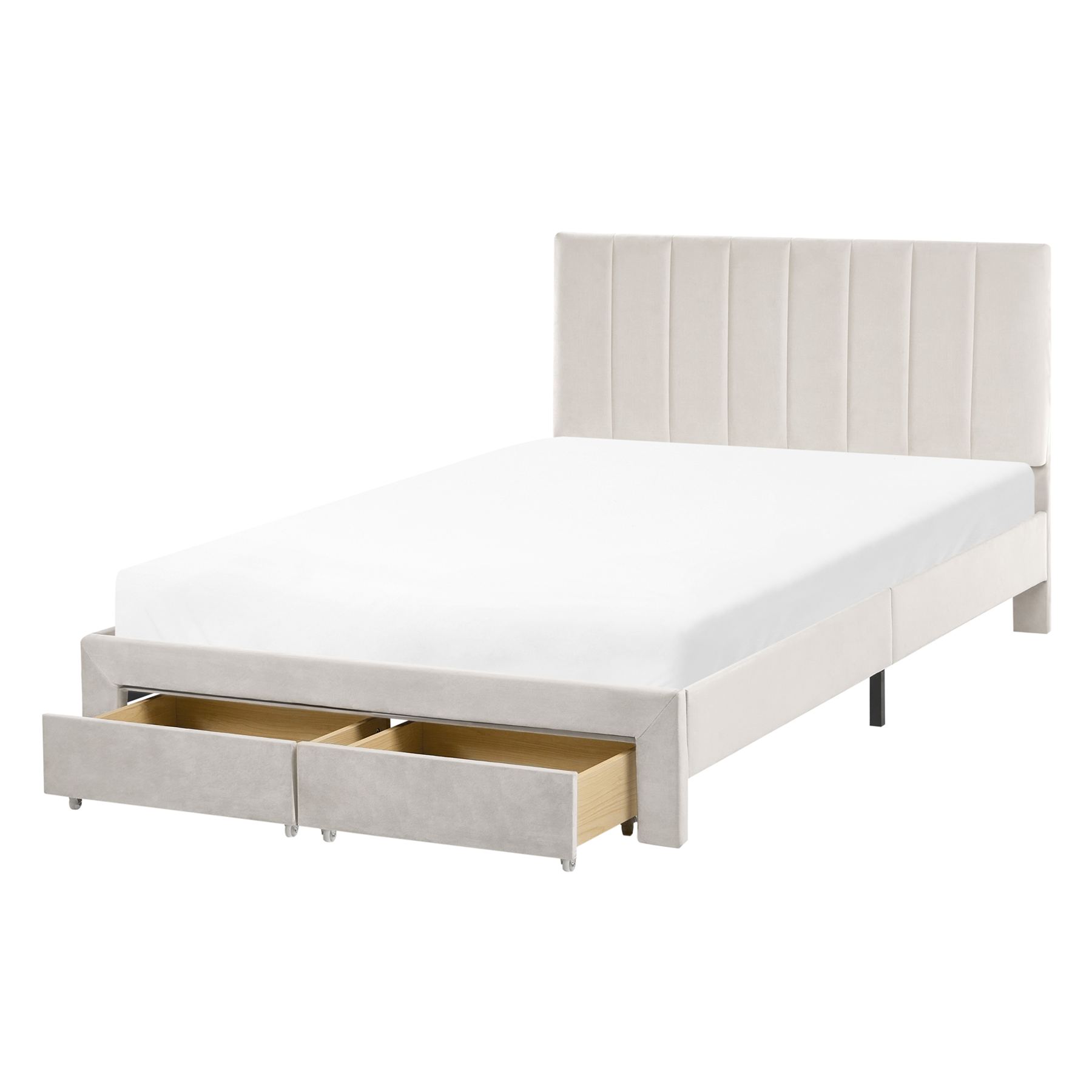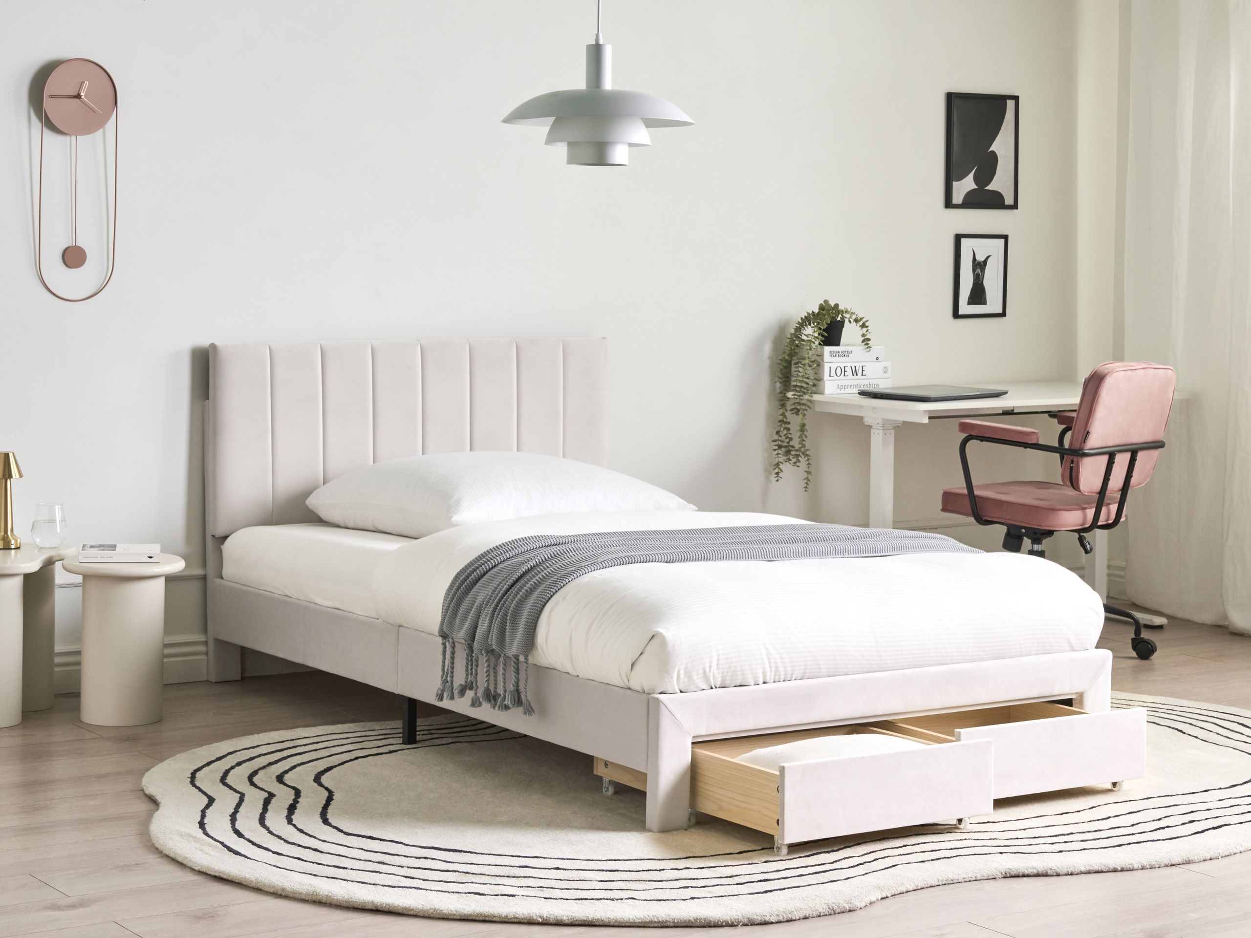 Beliani-LONZAC-Bed met opbergruimte-Gebroken wit-120 x 200 cm-Fluweel