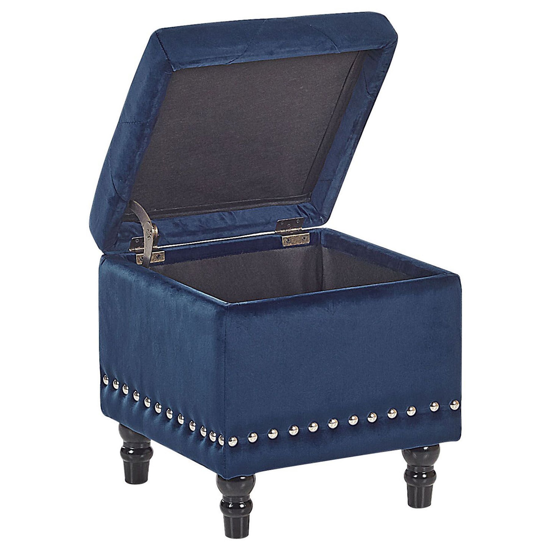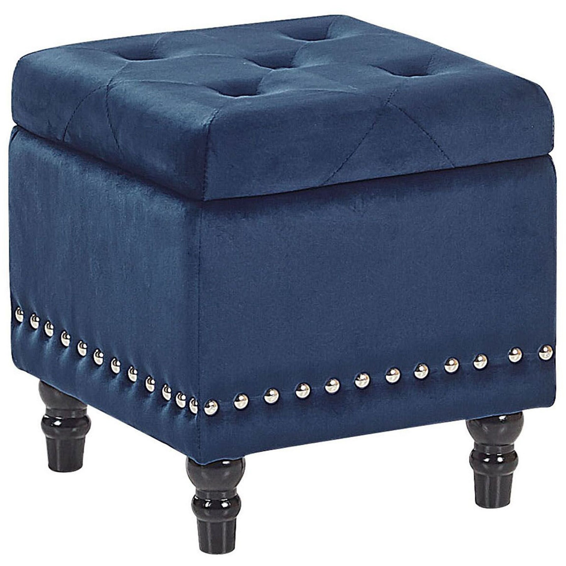 Beliani - LORETTO - Poef - Donkerblauw - Fluweel