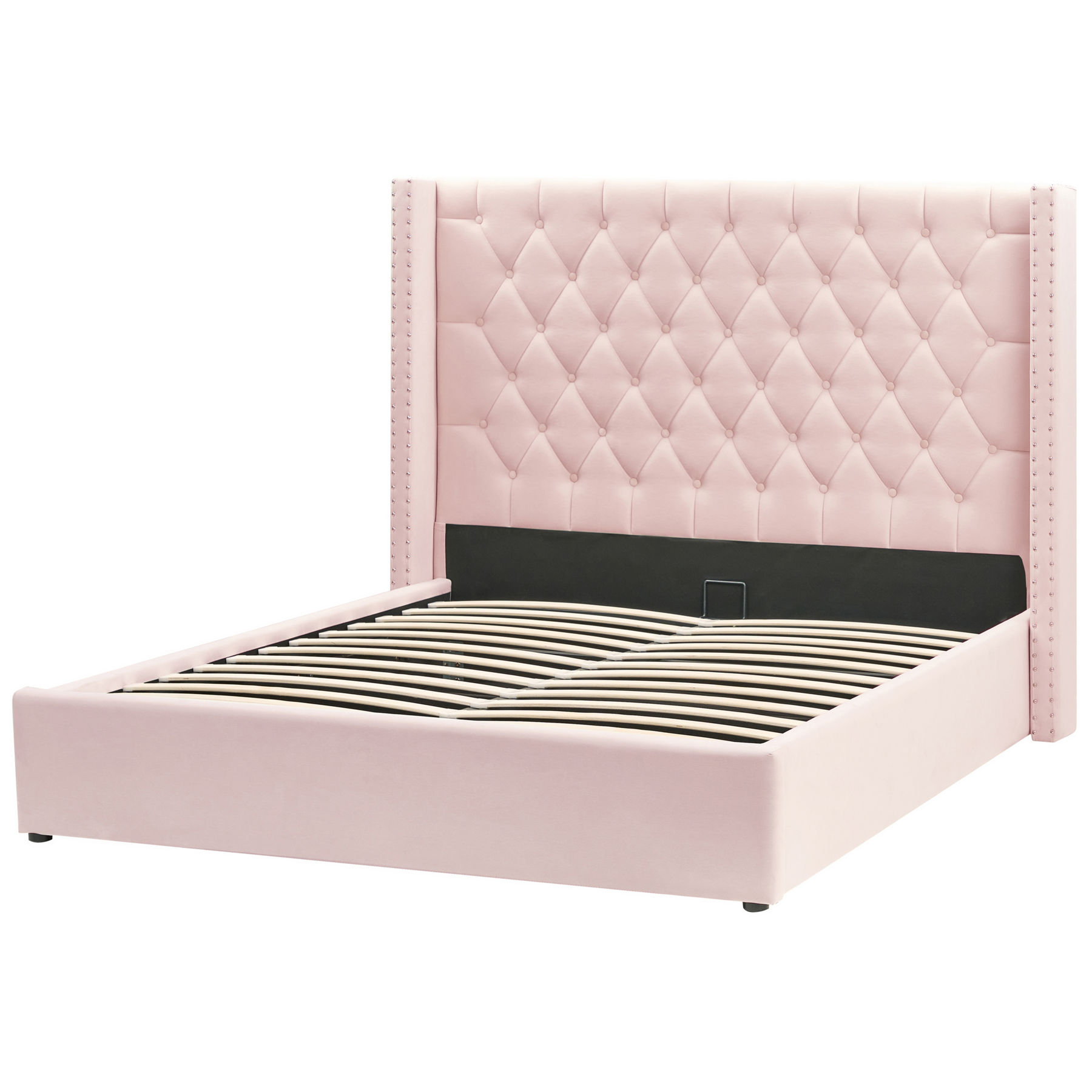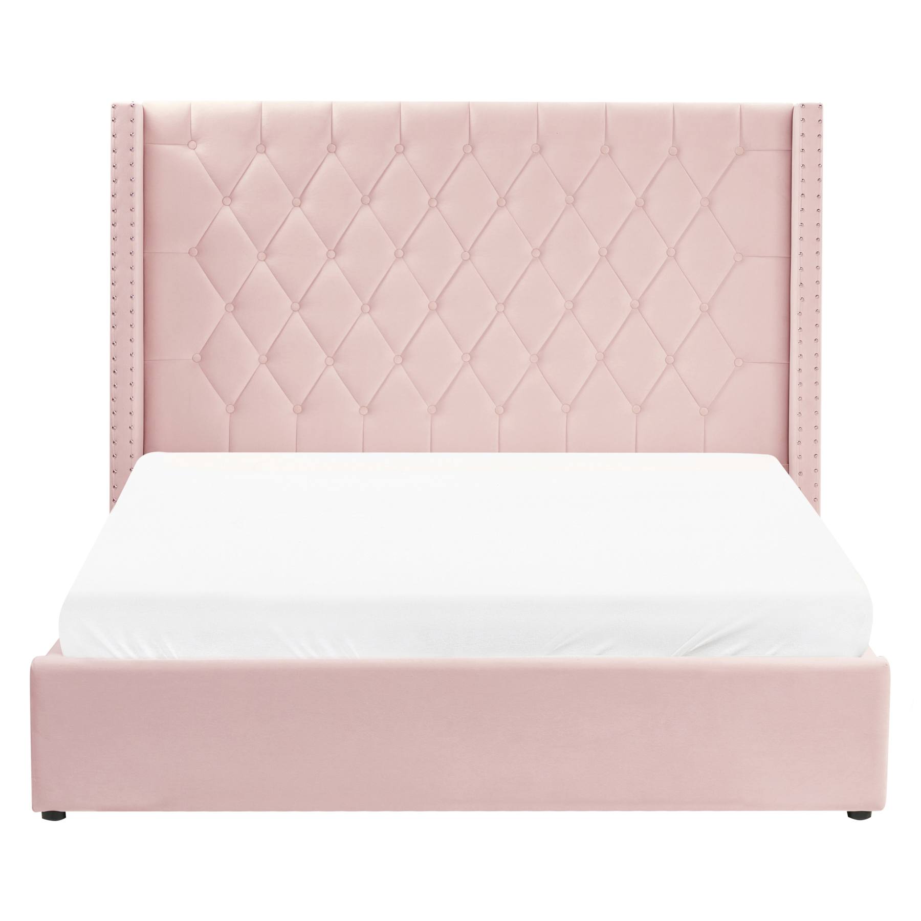 Beliani-LUBBON -Bed met opbergruimte-Pastelroze-160 x 200 cm-Fluweel