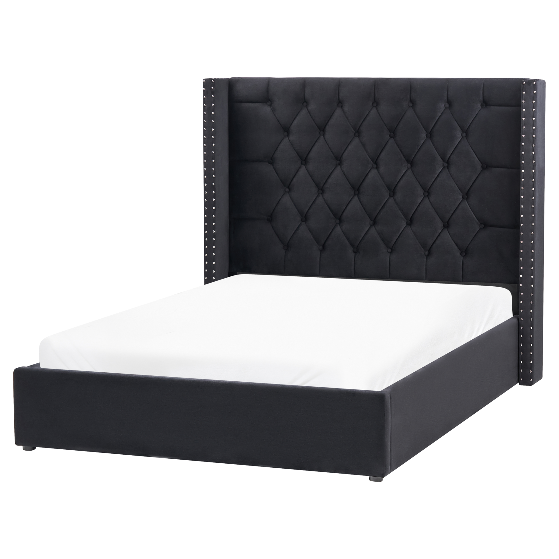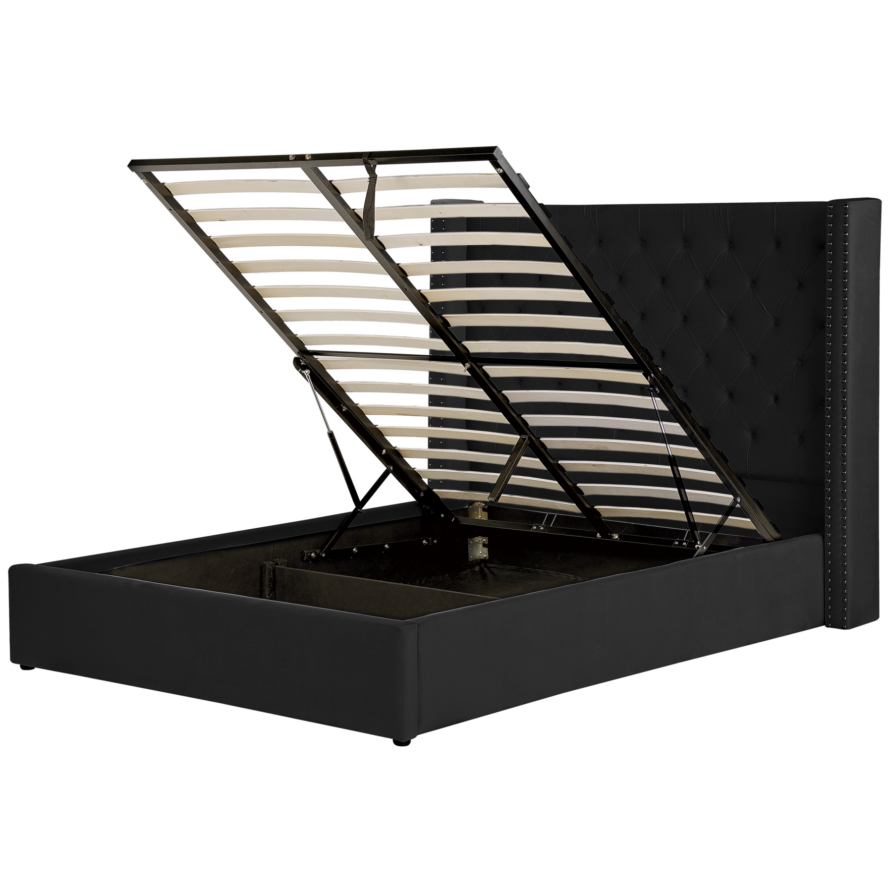 Beliani-LUBBON-Bed met opbergruimte-Zwart-140 x 200 cm-Fluweel