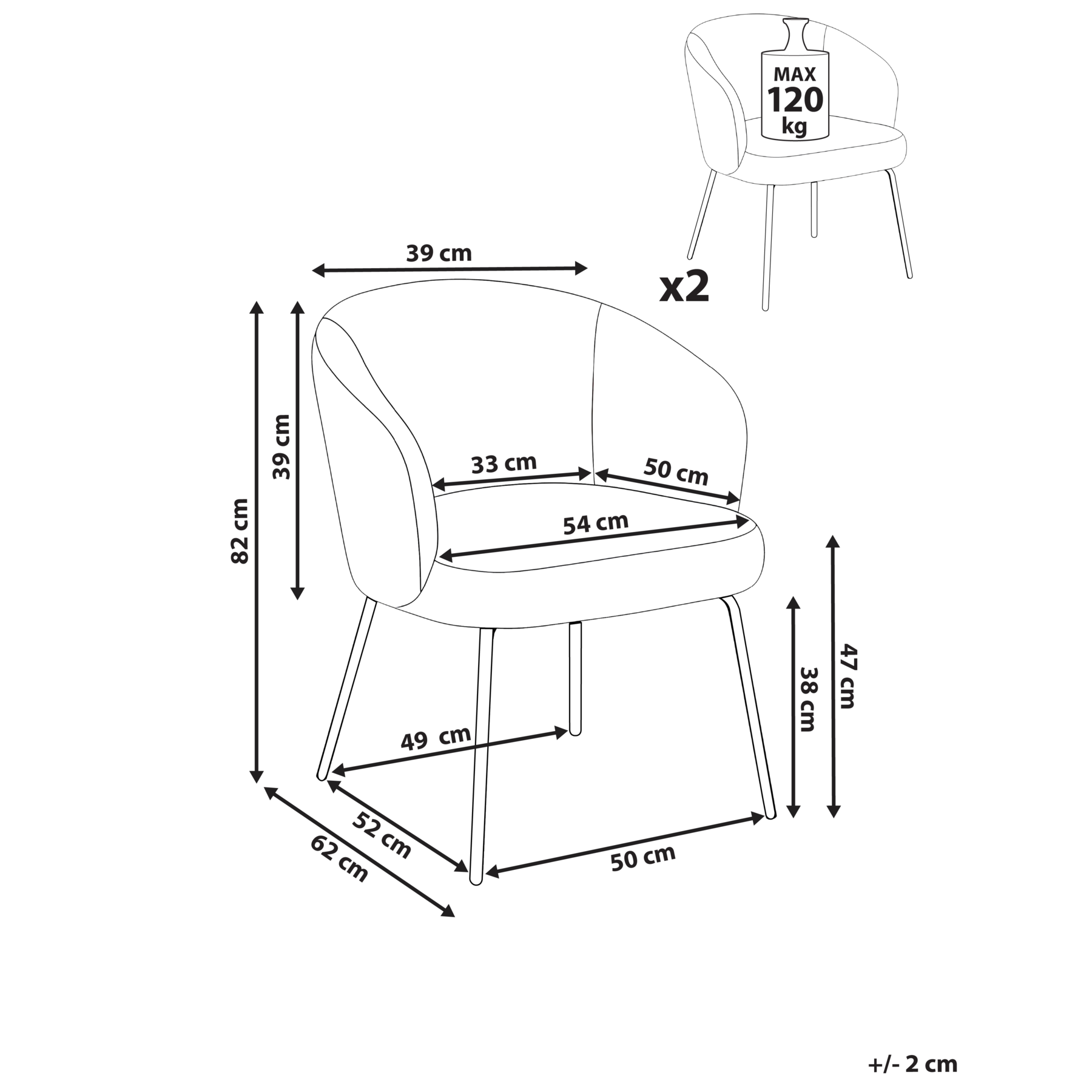 | Maximale draagkracht | 120 kg |