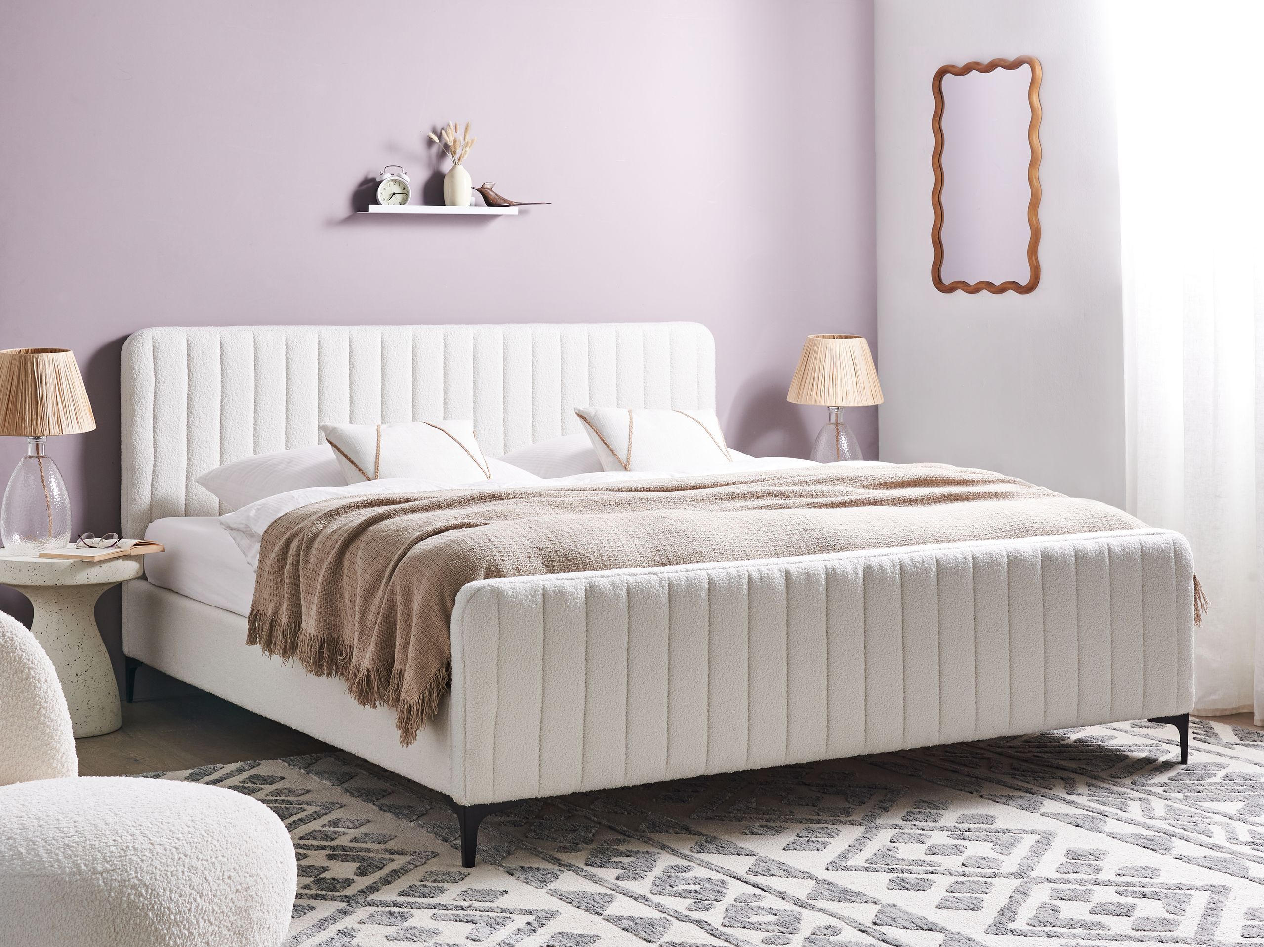 Beliani-LUNAN-Tweepersoonsbed-Gebroken wit-180 x 200 cm-Bouclé