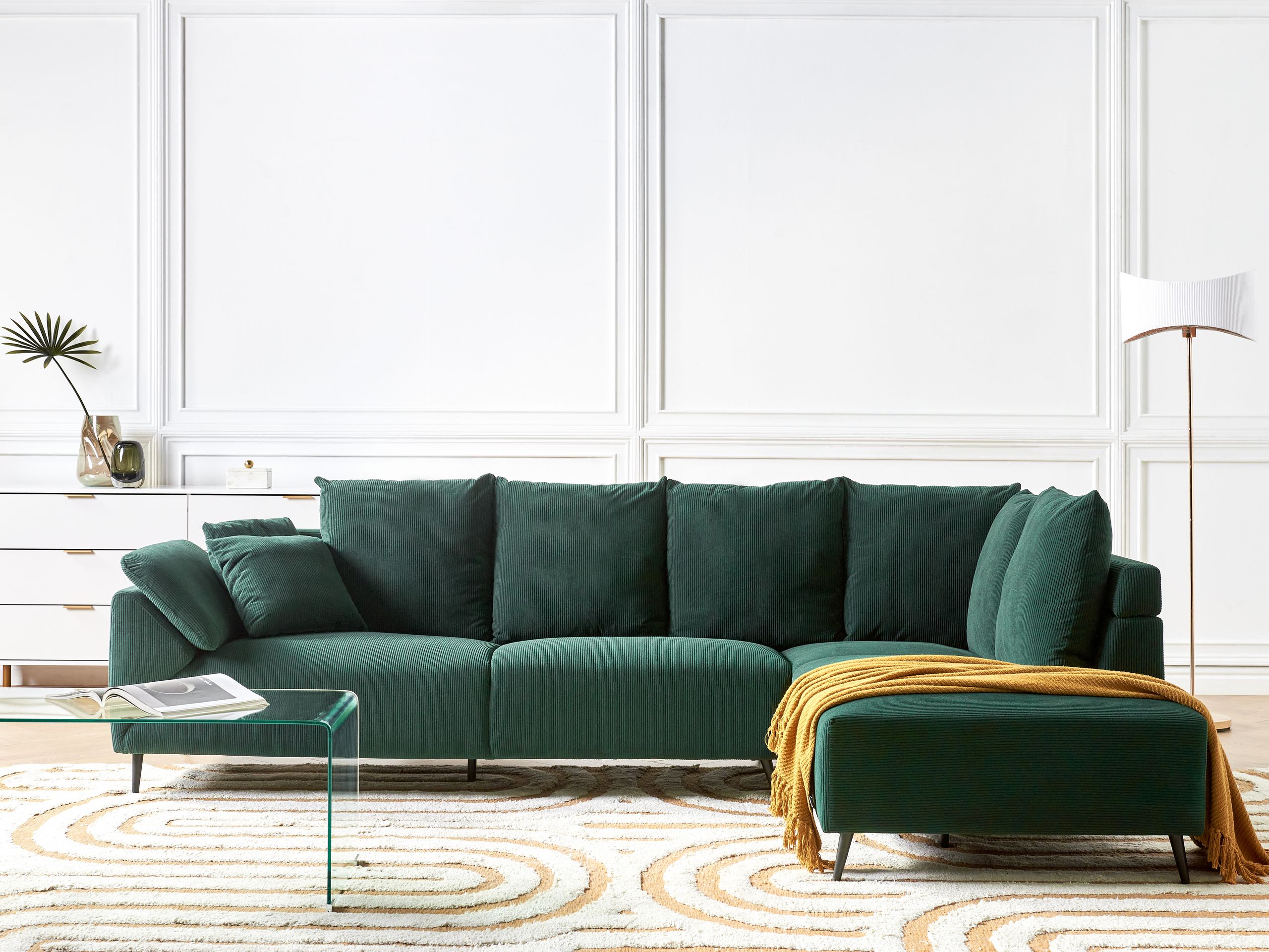 Beliani - LUNNER - Hoekbank - Donkergroen - Linkszijdig - Corduroy